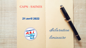 Voici leur déclaration liminaire lors de la CAPN des SAENES du 21 avril 2022:
