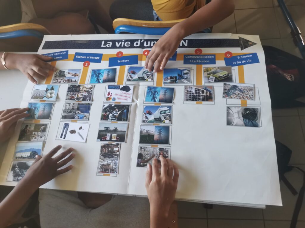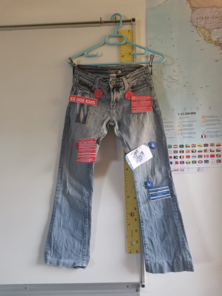 provenant des emballages. - Sensibilisation aux conséquences de la fast fashion à travers l’exemple de la vie d’un jean.