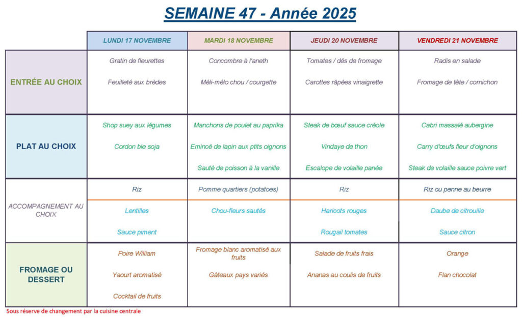 Home Administration Menu Restauration Menu restauration semaine 47