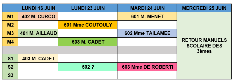 PLANING DE REINSCRIPTIONS ET DE RESTITUTIONS DES MANUELS SCOLAIRES