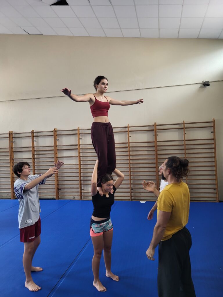 Les élèves de 4e ont participé à des ateliers d’initiation au cirque (portés, équilibre, expression corporelle), encadrés par les artistes de la compagnie. La Section Sportive RAID a bénéficié de deux workshops intensifs, pour approfondir la gestion de l’effort, la coordination, la coopération et la créativité dans le mouvement.