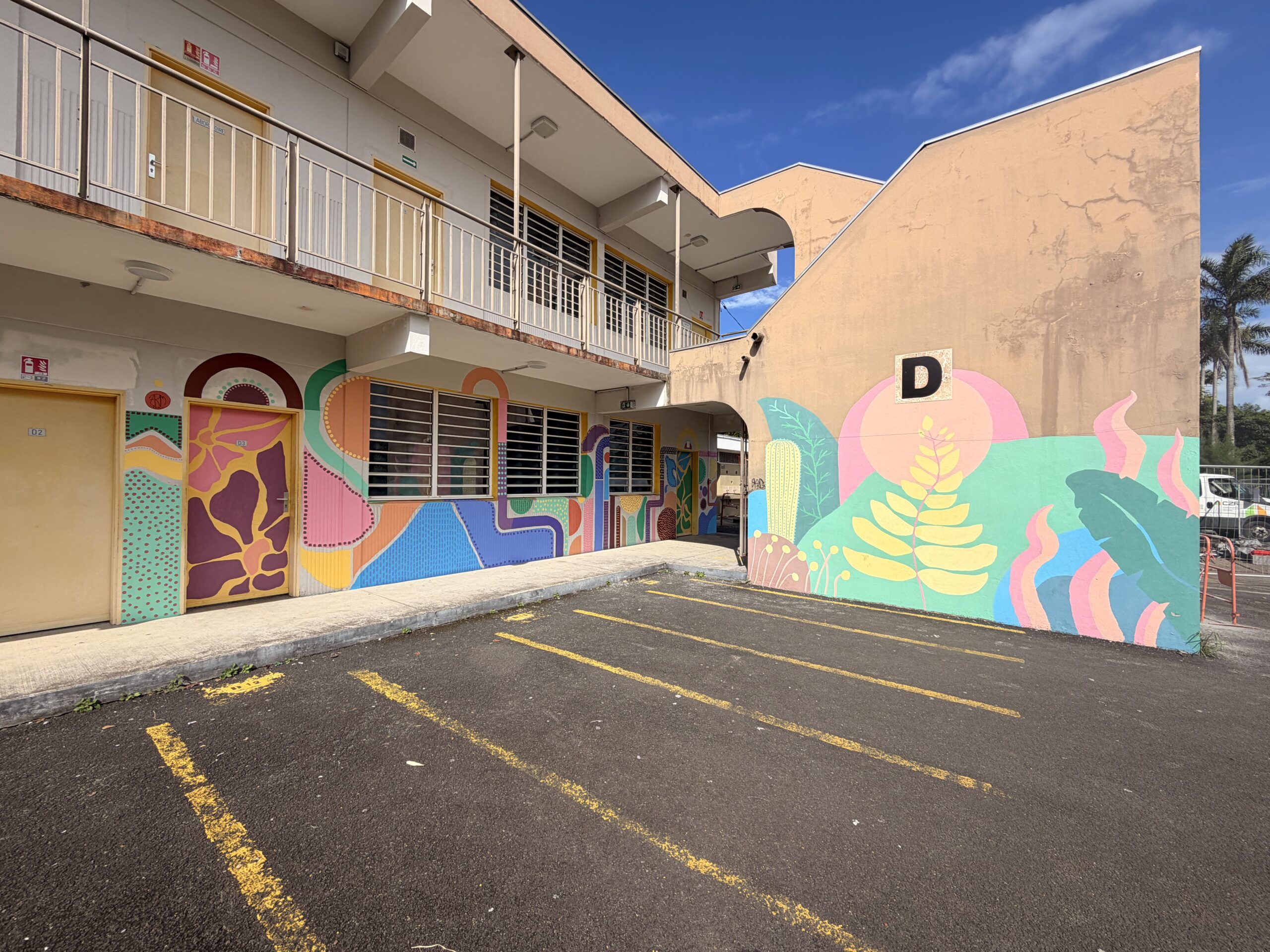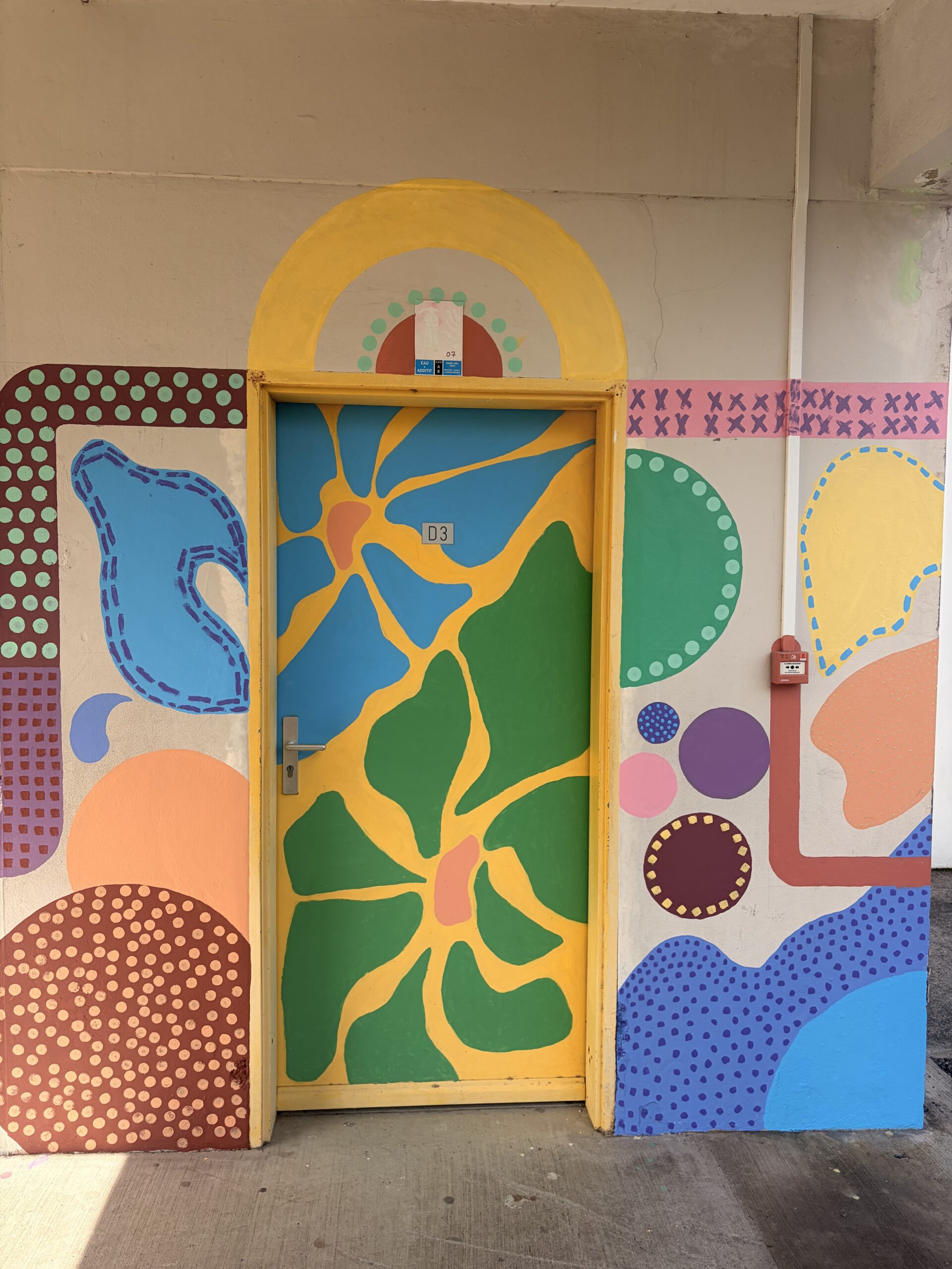 À travers une peinture abstraite mêlant formes, couleurs et motifs, ils ont cherché à exprimer et révéler ce qui se vit dans cette salle : la créativité, les émotions, les expérimentations.