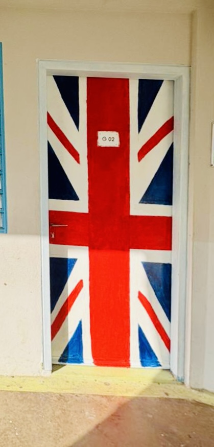 Dans le cadre de notre projet, nous avons entrepris l’embellissement des portes des salles d’anglais avec la participation d’un groupe de 10 élèves volontaires.