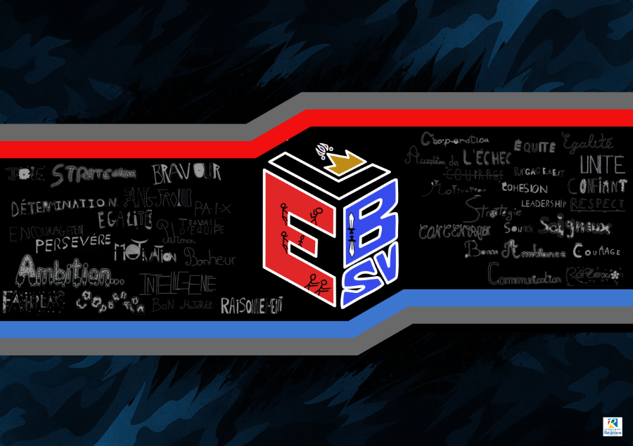 L’équipe a fait des propositions de logo au CDI et c’est celui de Mélanie qui a été choisi (« E » pour Équipe, « BSV » pour Bory de St-Vincent et le « B » c’est aussi pour battle et « L » pour League Of Legends).