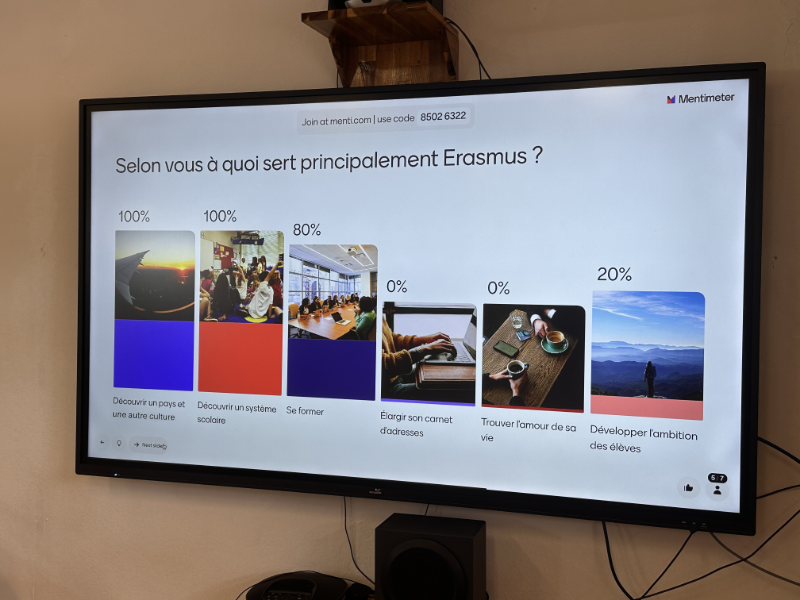 - – Réunions et formations à destination des professeurs et autres membres de la communauté éducative (appel à candidatures Erasmus 2026-2027, formations sur eTwinning avec M. Guillaume VALLET de Canopé, en informatique avec Mme Julie PAYET et en Anglais avec M. Daniel MUSSARD).