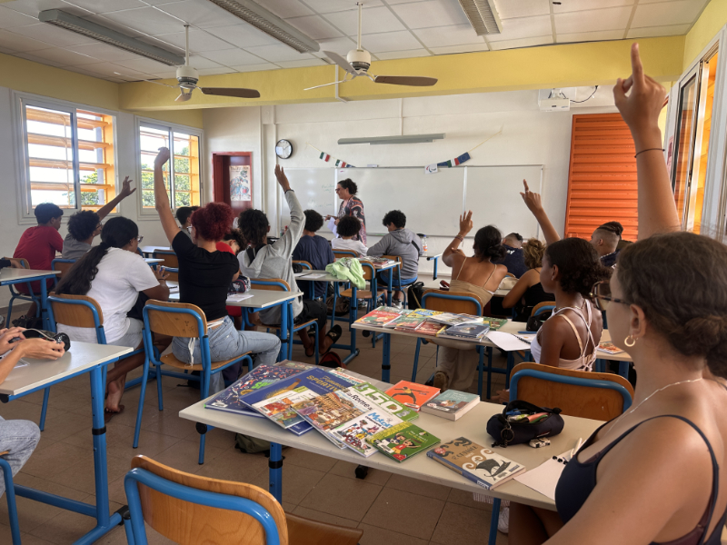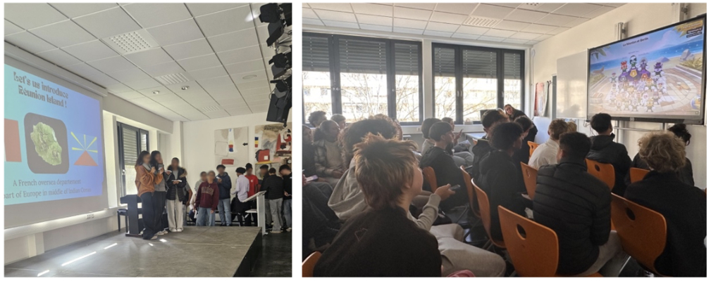 • À l’école, où les élèves ont présenté La Réunion et assisté à des cours avec les correspondants Allemands.