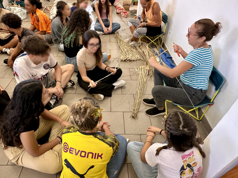 Atelier tressage de Vacoa à la Maison de la Tresse de St-Philippe avec tous les correspondants