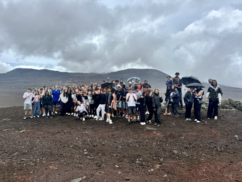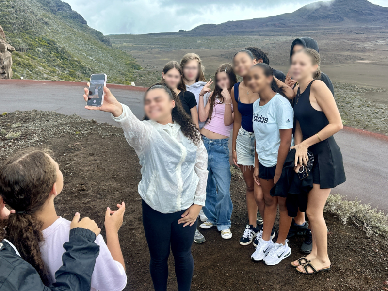Chaque année les élèves de 4è bénéficient d’une sortie au volcan dans le cadre du programme de SVT de 4è (La Terre et sa dynamique : volcanisme et séisme). Malgré un long trajet dû aux intempéries de cette saison cyclonique, les Italiens et Allemands ont eu l’opportunité de faire cette sortie et ont découvert le Nez de Bœuf, où ils ont pique-niqué, la Plaine des Sables avec sa vue sur le Piton de la Fournaise, et la cité du volcan.