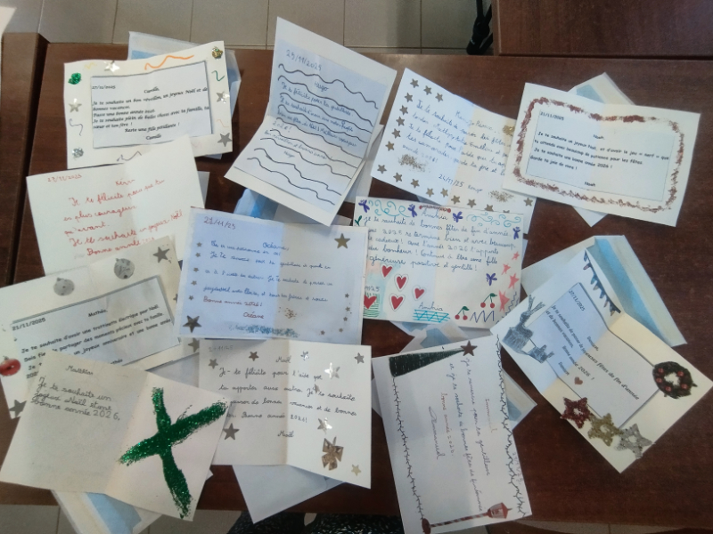 Après un peu de temps… un festival de petits mots bienfaisants, réconfortants et valorisants ont vu le jour, tous habillés de paillettes, d’étoiles, de cœurs, de cadeaux créant de merveilleuses cartes de vœux pour eux-mêmes !