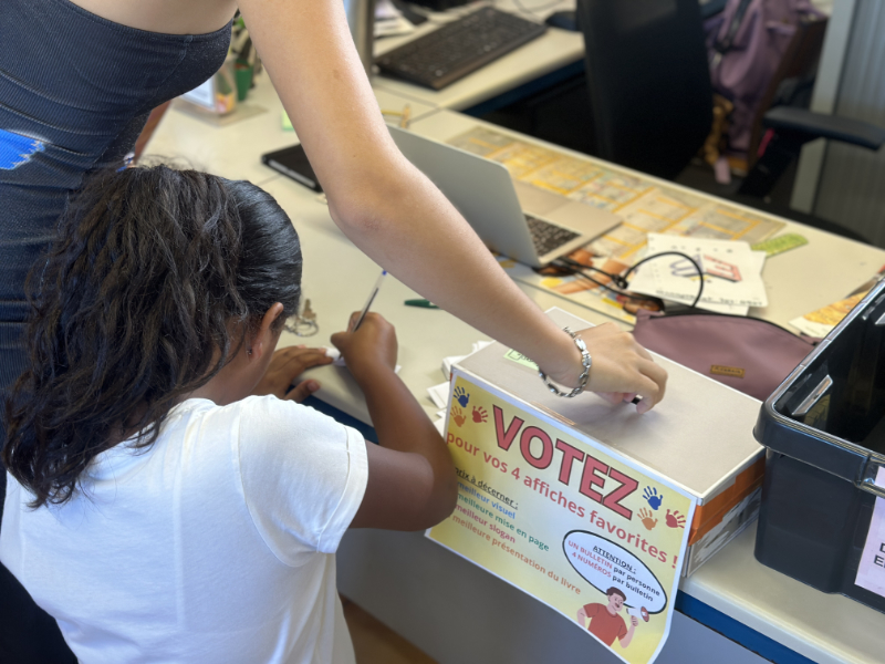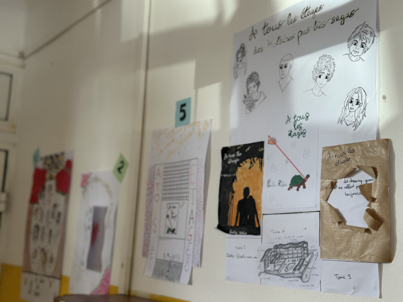 Les élèves ont d’abord étudié et/ou lu le livre À tous les étages ou des extraits en classe, puis ils ont préparé des questions. Les élèves de M. DALLY ont aussi réalisé des affiches ; tous les visiteurs du CDI pouvaient voter pour leurs 4 affiches préférées (meilleur visuel, meilleure mise en page, meilleur slogan, meilleure présentation du livre) pendant une semaine, une remise des prix a ensuite eu lieu en classe.
