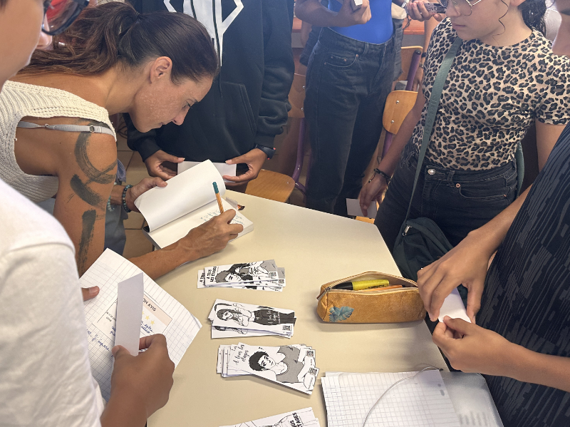 À la fin de la rencontre, les élèves sont repartis avec des marque-pages qu’ils ont pu faire dédicacer par l’écrivaine et certains élèves se sont empressés d’emprunter les tomes 2 ou 3 pour découvrir la suite de l’histoire.