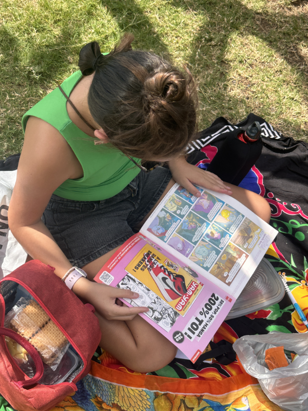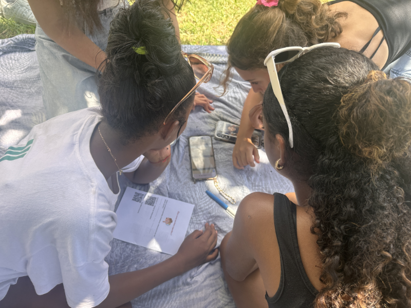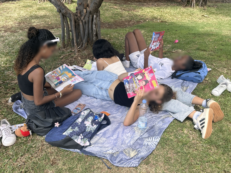 Pendant la sortie, les élèves ont pu participer à un jeu autour du monde des médias et faire leur quart d’heure lecture de la presse en plein air.