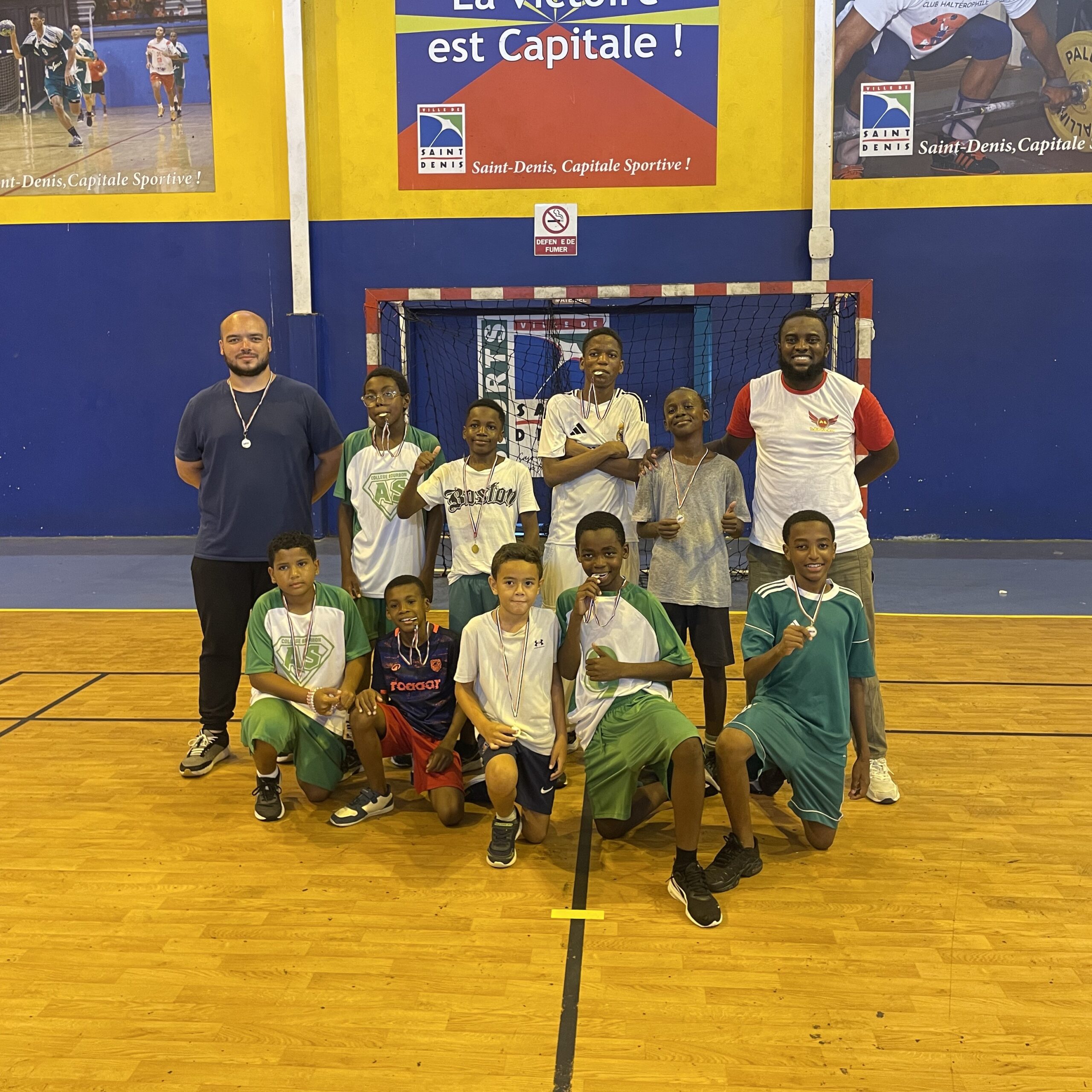 La finale du district s’est déroulée le 18 février 2026 au gymnase du Moufia pour les benjamins et au lycée Mémona Hintermann Affejee pour les minimes. Lors de cette finale, la qualité technique, le respect des consignes et l’abnégation des minimes leur ont permis de remporter leurs matchs et le titre de champion du district nord. En ce qui concerne les benjamins, menés à la mi-temps, la force mentale et la capacité à répéter les efforts ont fini par avoir gain de cause. En effet, nous avons assisté à une véritable « remontada » de la part de l’équipe des benjamins pour se terminer avec un score de 4 à 1 en faveur des benjamins de Bourbon. C’est dans cette euphorie que les benjamins et les minimes de Bourbon ont terminé la journée et ont obtenu le titre de champion du district nord ainsi que leurs qualifications pour les finales académiques.