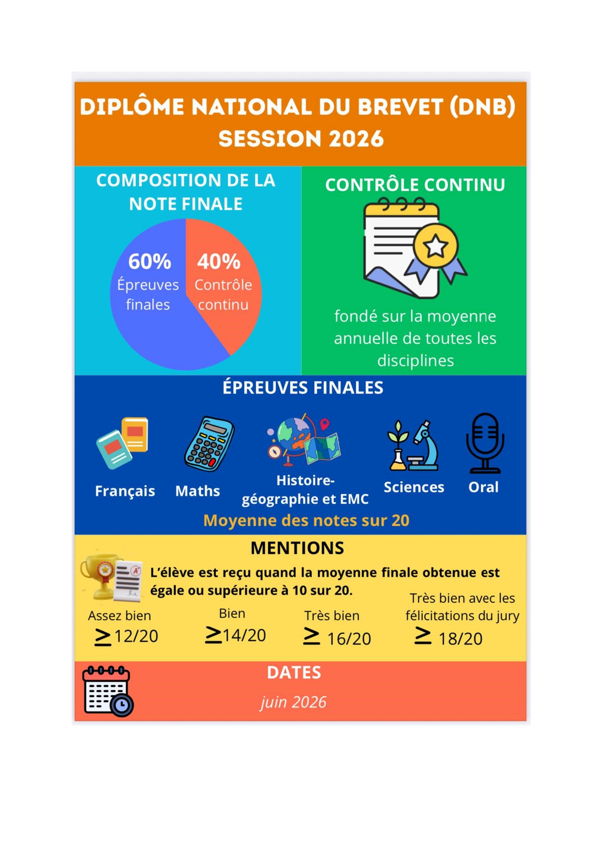 Informations à destination des parents d’élèves de 3ème concernant le DNB session 2026