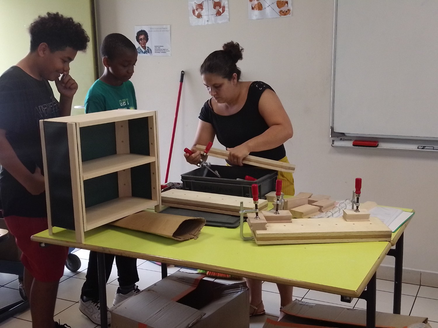 Le projet Manufacto, la fabrique des savoir-faire est un programme de sensibilisation aux gestes et métiers de la main en milieu scolaire. La 403 du collège Morin est la seule classe de collège de la Réunion à faire partie de ce projet cette année. Tout au long de l’année, les élèves sont accompagnés par Mme BONHOMME Ghislaine, une ébéniste de Salazie, et par Mlle FERRERE Eva, stagiaire et étudiante aux Beaux-Arts dans la fabrication de A à Z d’une étagère. Ils découvrent ainsi l’univers et les savoirfaire de la menuiserie.