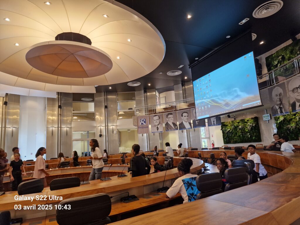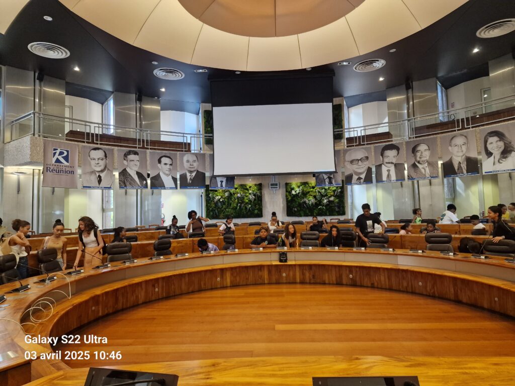 Le jeudi 3 avril tous les délégués du collège sont partis à St Denis pour une sortie. Durant cette sortie nous avons commencé par visiter le Conseil Départemental. Une fois, installés dans l’hémicycle, Jessie Robert, la Responsable de service Conseil Départemental des Jeunes nous a présenté le Conseil Départemental accompagnée de Mme Mercedes PANDOR.