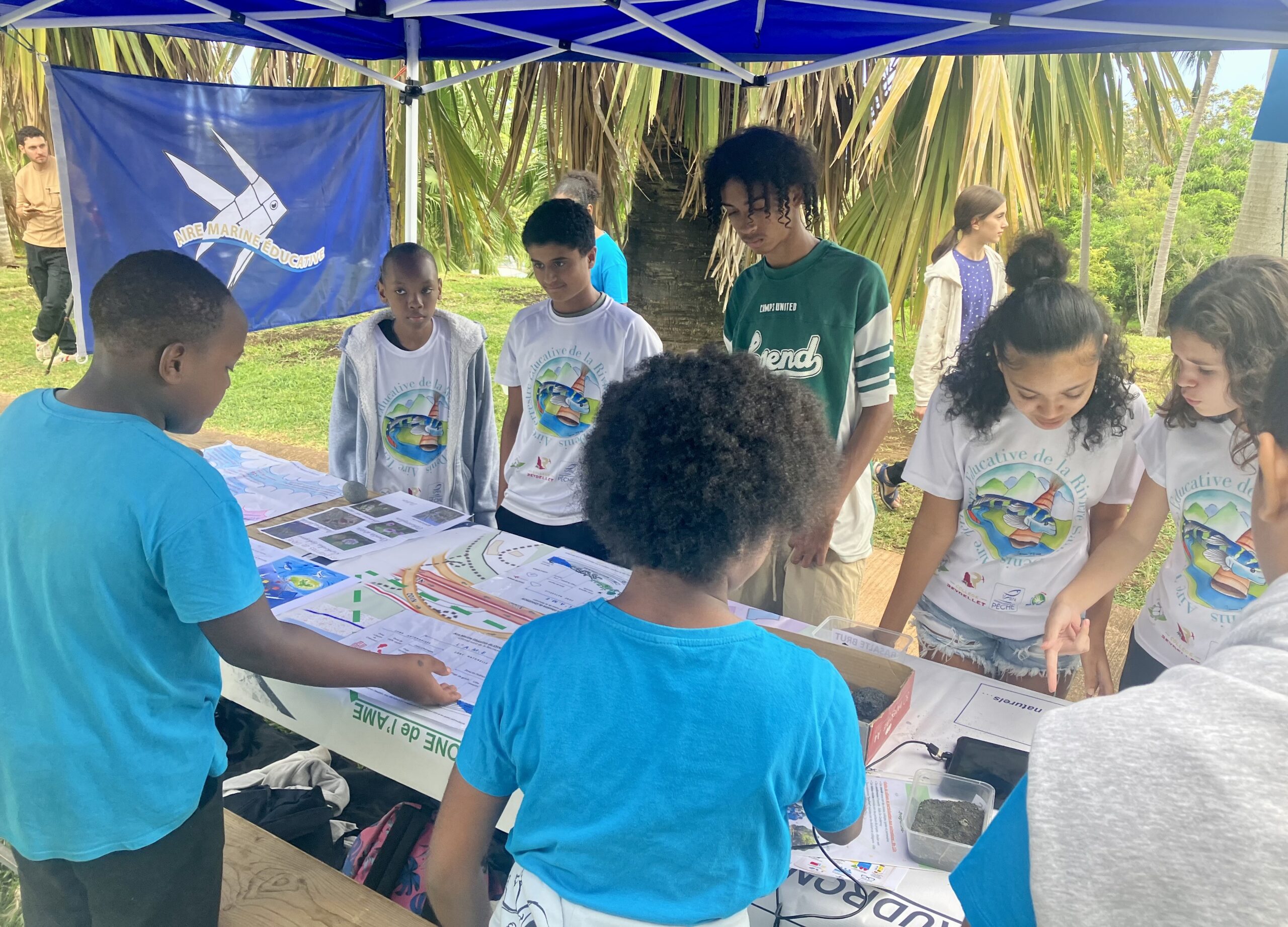 -6 élèves de la 603 avec un stand d’exposition de l’AME.