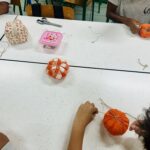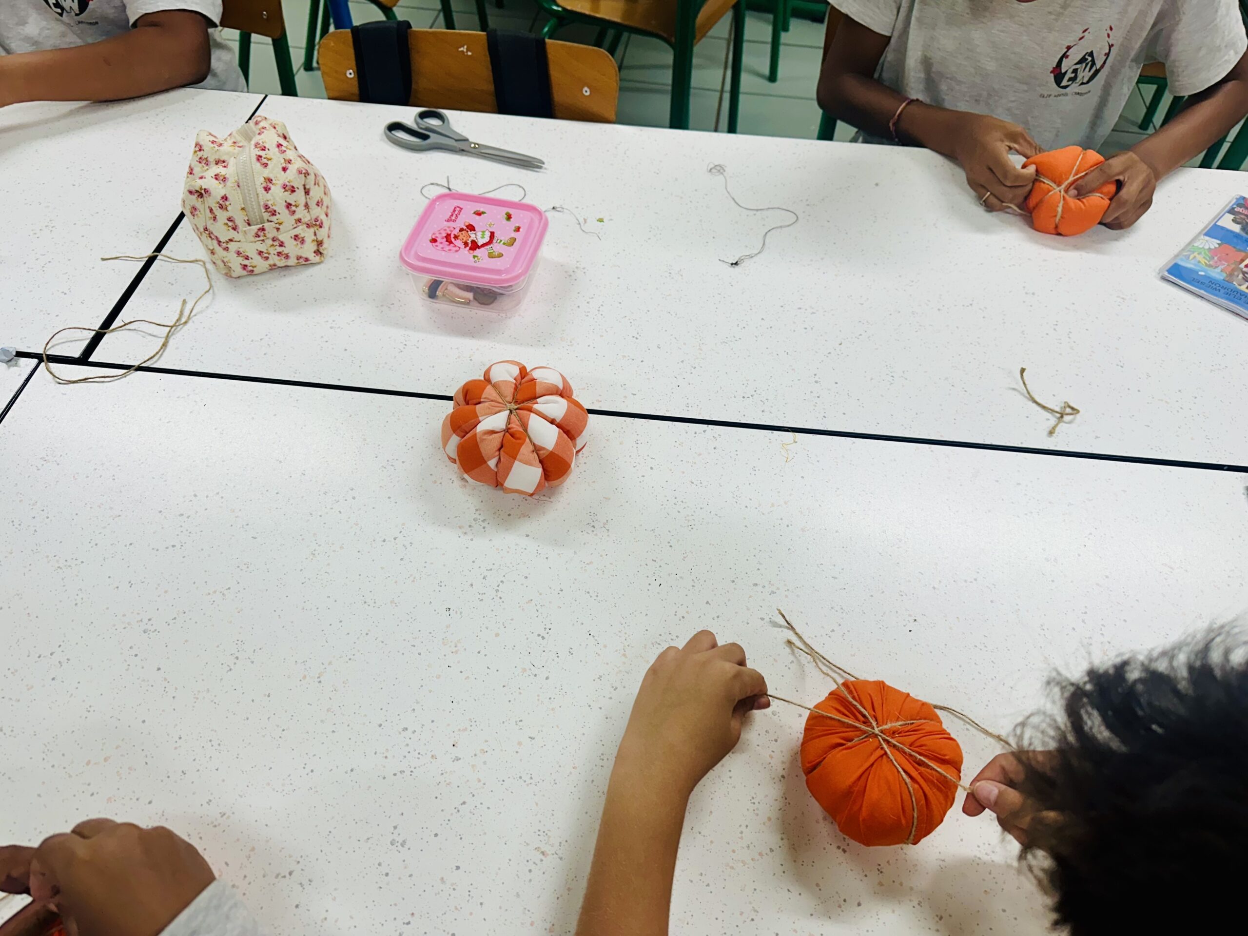 đ De leur cĂŽtĂ©, les Ă©lĂšves de lâatelier scrapbooking-couture ont confectionnĂ© de belles citrouilles en tissu.