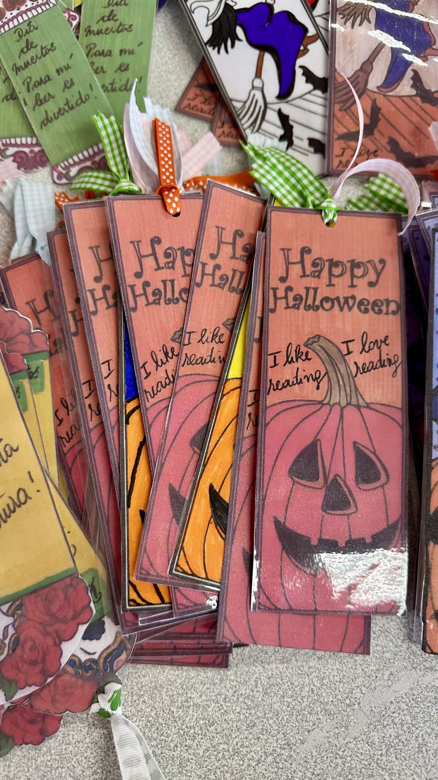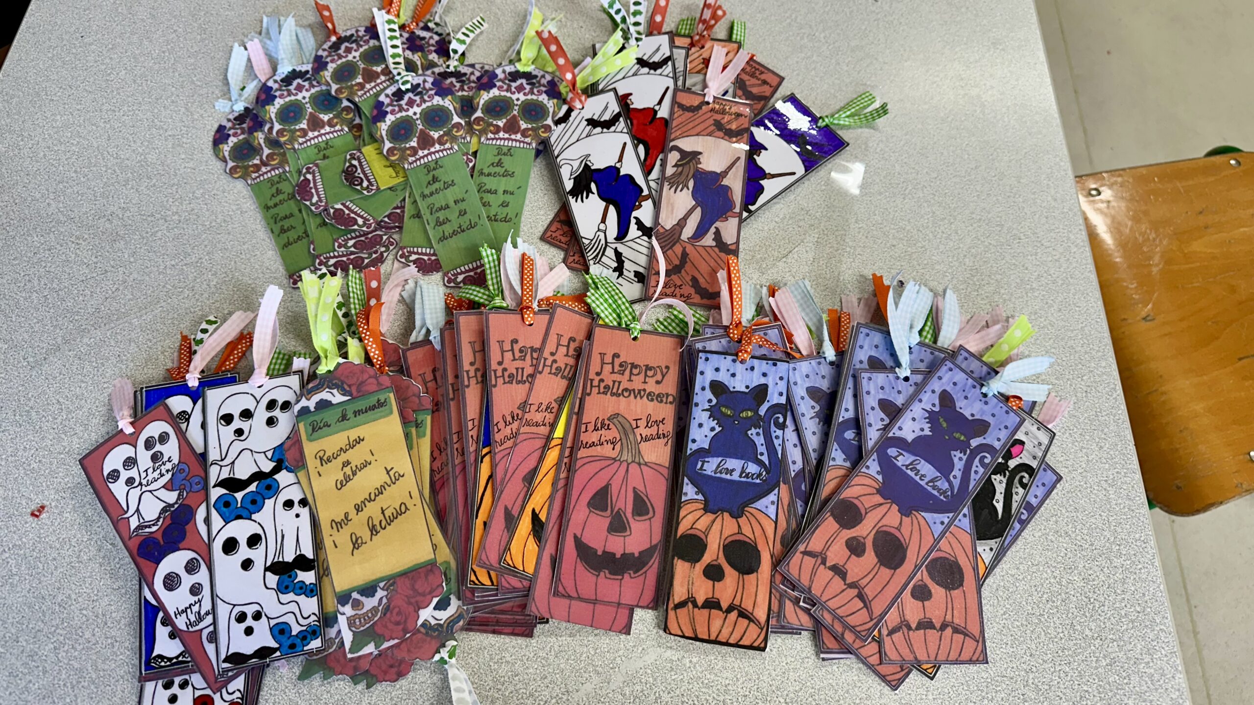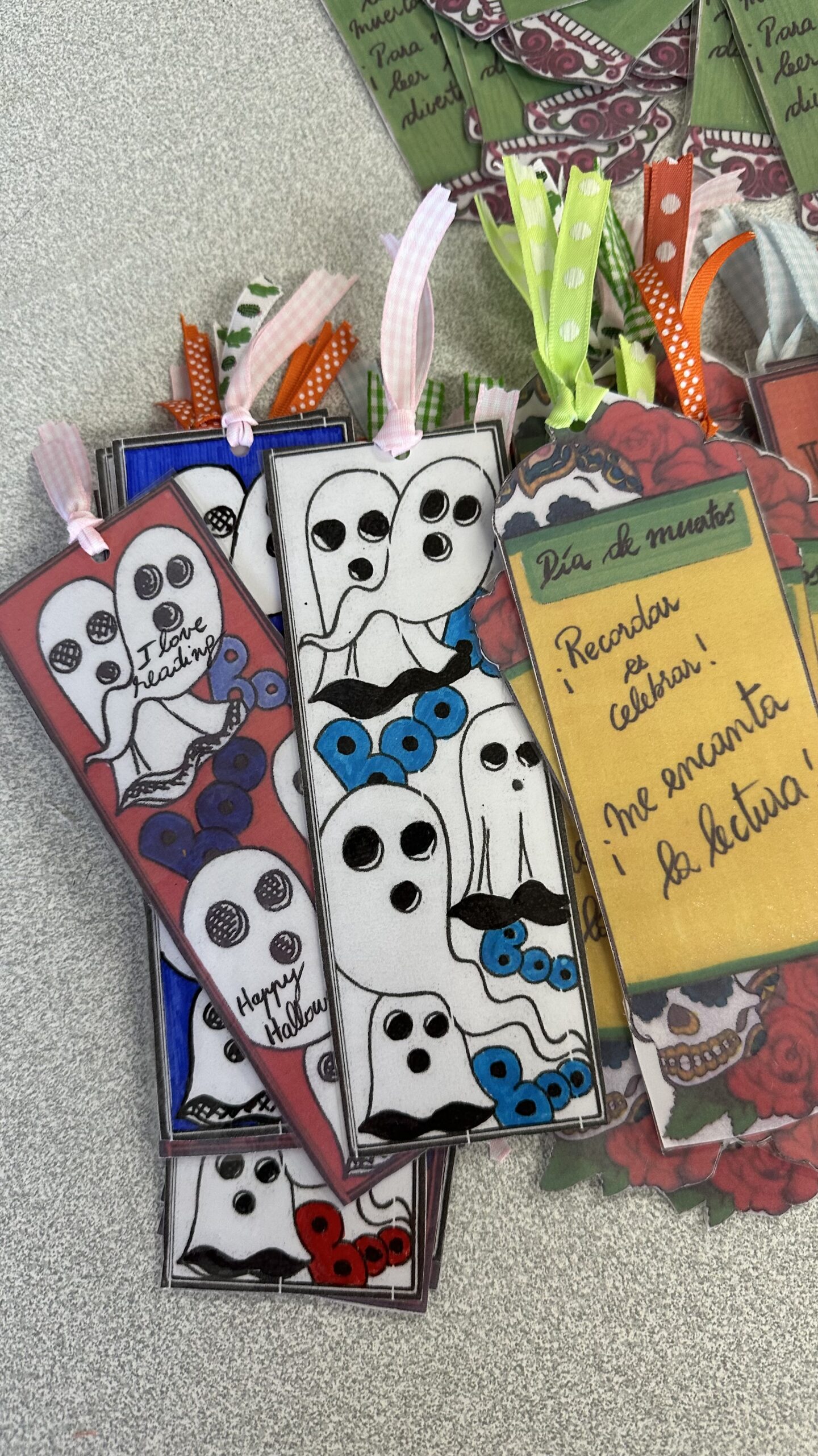 đ Les 3e PrĂ©pa-MĂ©tiers ont cĂ©lĂ©brĂ© le lancement du quart dâheure lecture en rĂ©alisant de magnifiques marque-pages sur les thĂšmes dâHalloween et del DĂa de Muertos.
