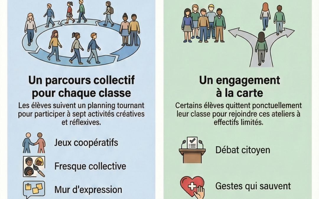 Au programme : débats, jeux, créations collectives et ateliers interactifs pour réfléchir autrement et construire ensemble une école plus juste.