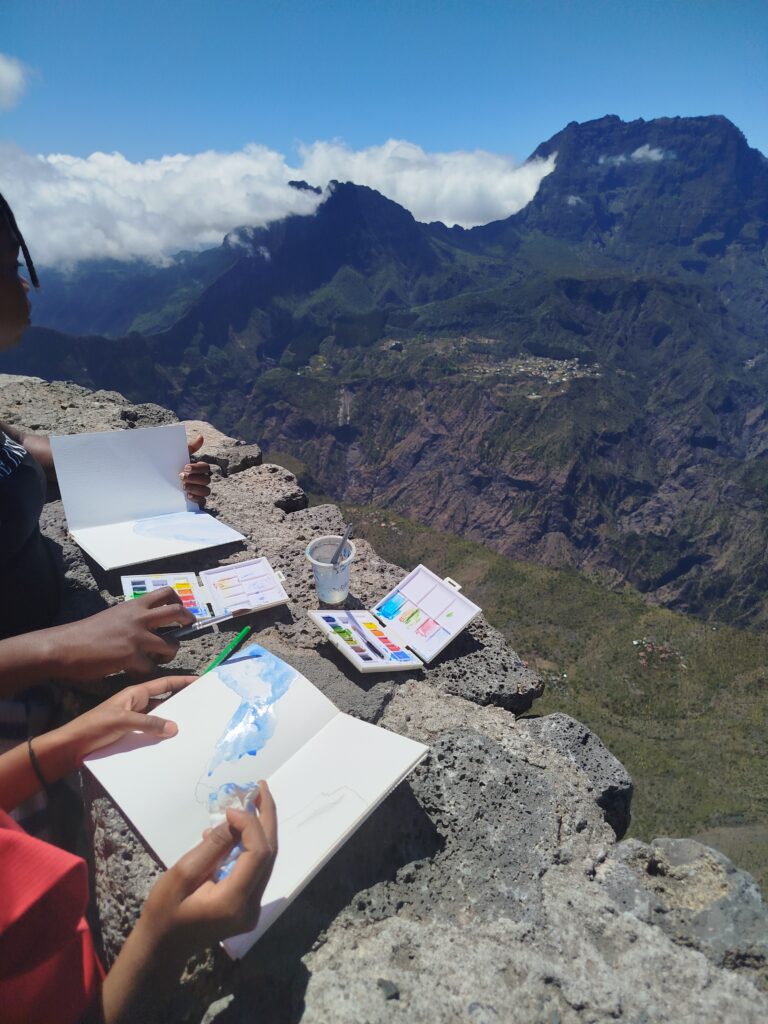 Accompagnés de leurs professeurs d’Arts plastiques et de SVT ainsi que de Fany Rivière, médiatrice du Parc National, les élèves ont pu découvrir le paysage exceptionnel des cirques et rempart de Mafate, sous un soleil radieux.