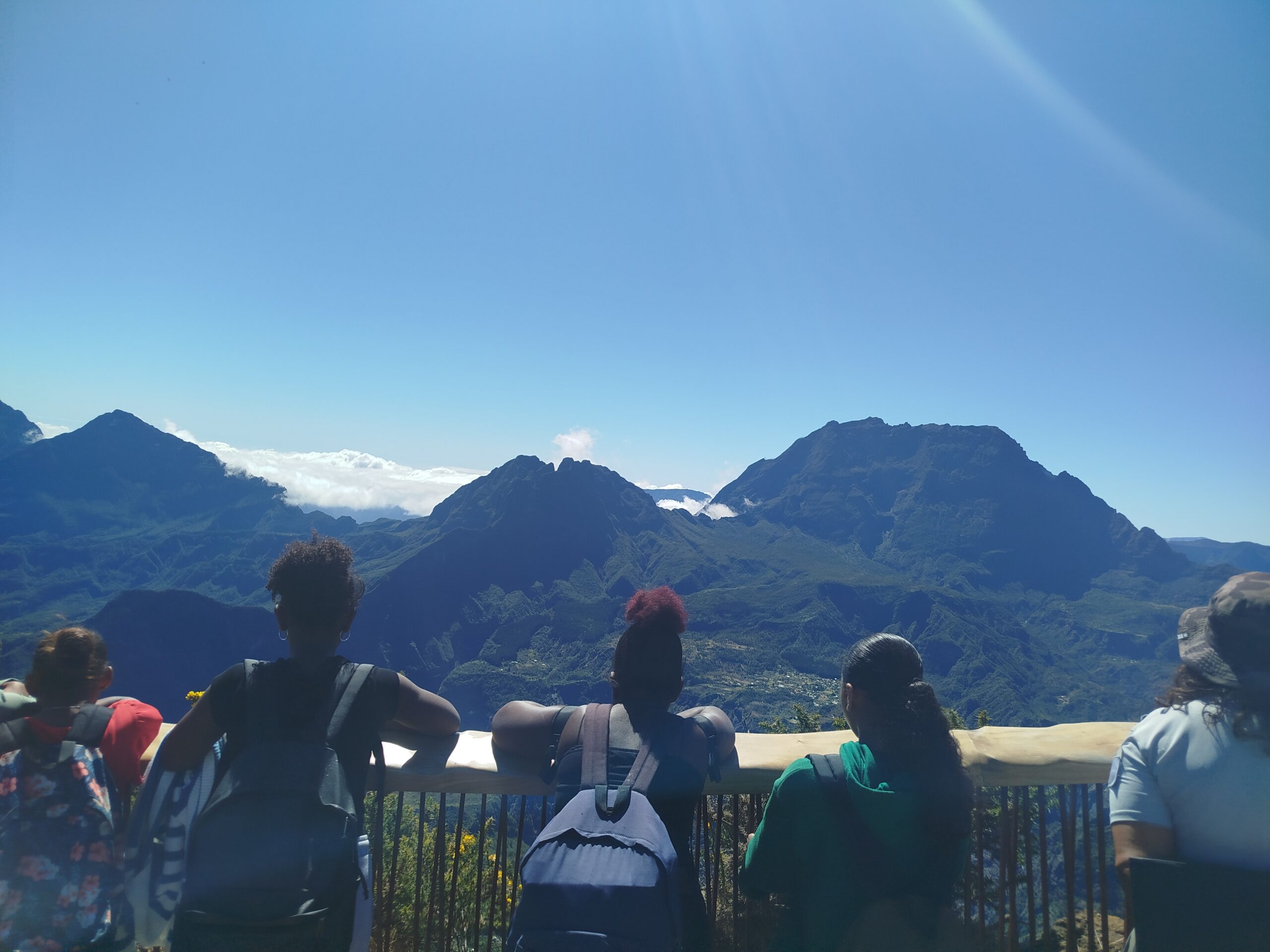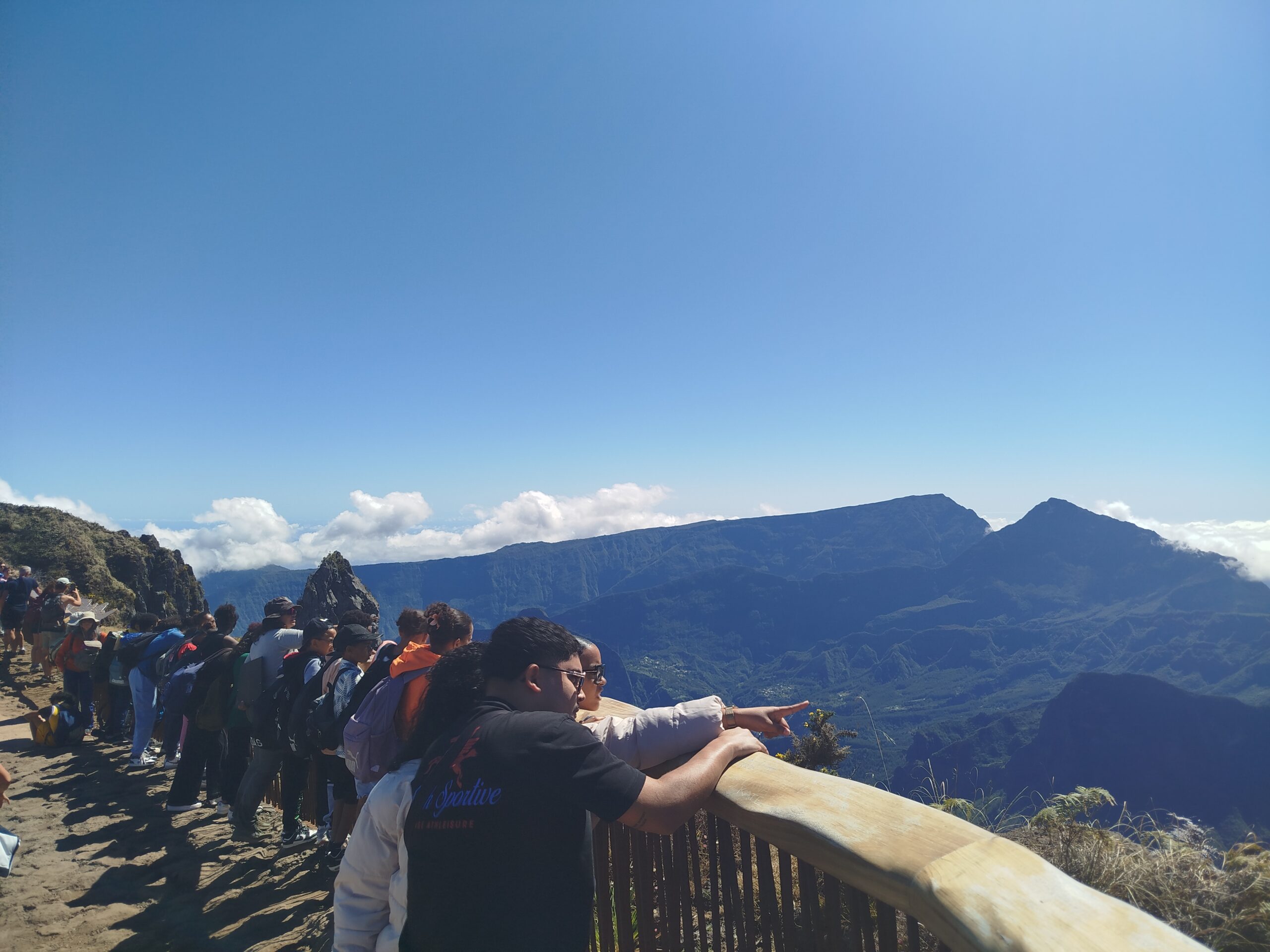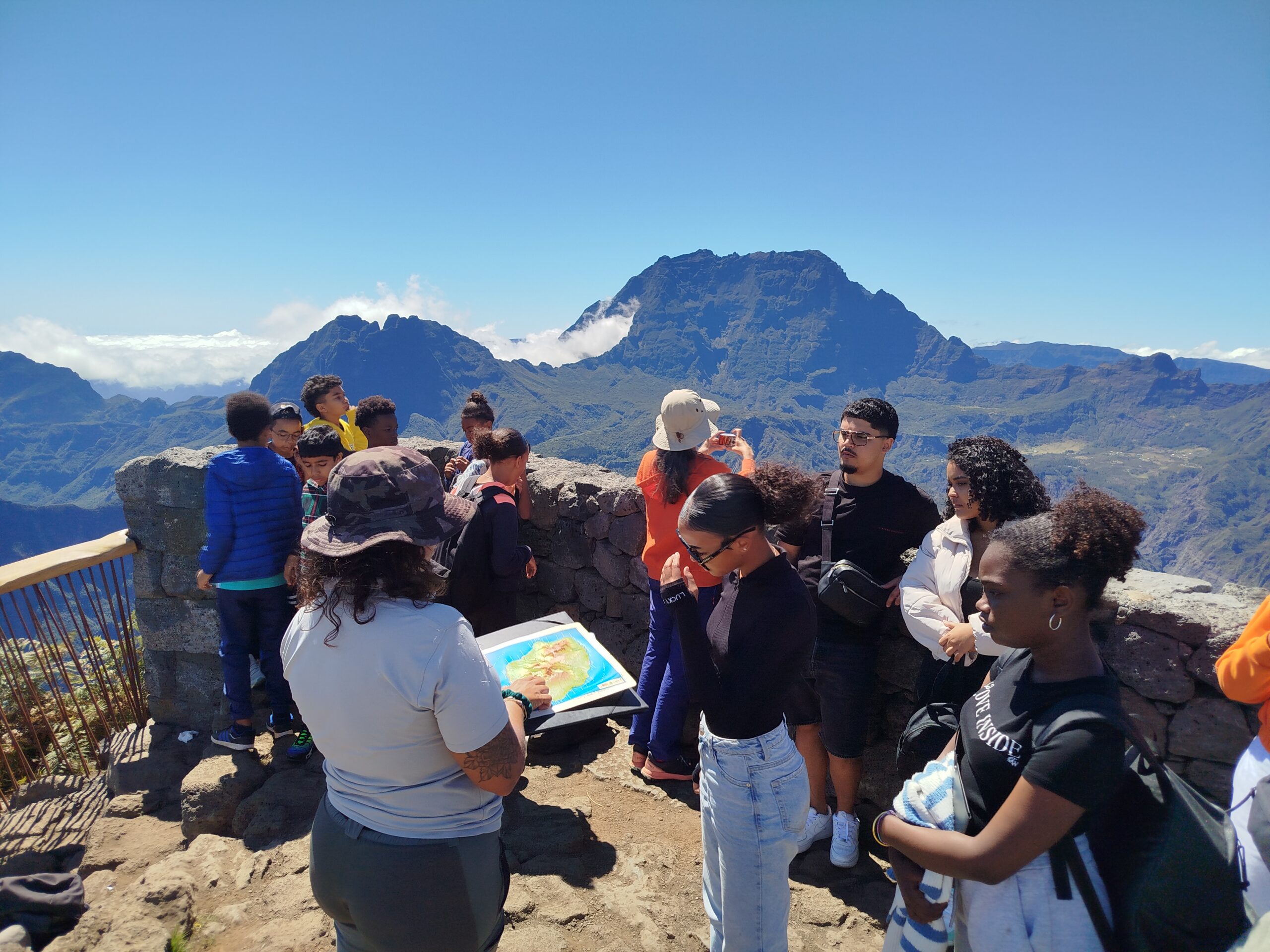 Accompagnés de leurs professeurs d’Arts plastiques et de SVT ainsi que de Fany Rivière, médiatrice du Parc National, les élèves ont pu découvrir le paysage exceptionnel des cirques et rempart de Mafate, sous un soleil radieux.