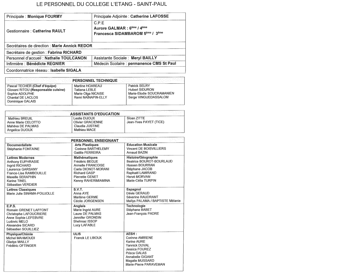 Personnel de l’établissement Ci-dessous, la liste du personnel pour l’année 2025-2026 Liste personnels 2025-2026