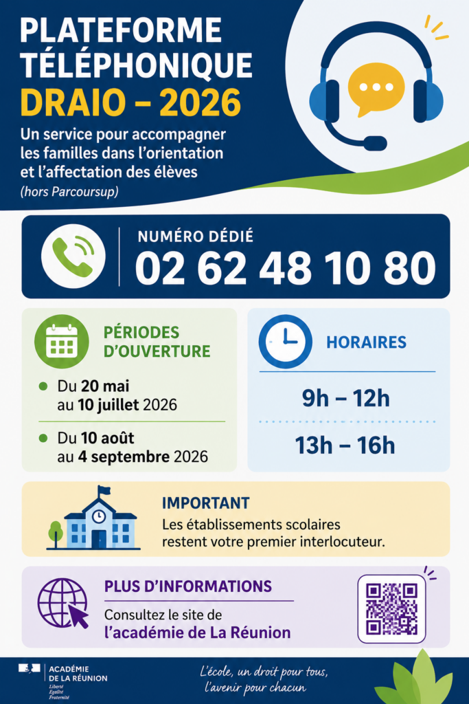 Afin de mieux répondre aux familles aux questions relatives à l’affectation de leurs enfants, une plate forme téléphonique va être mise en place cette année à la délégation régionale académique à l’information et à l’orientation (DRAIO).
