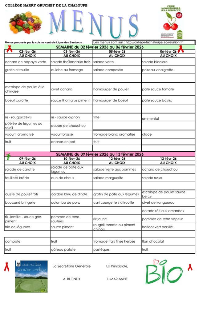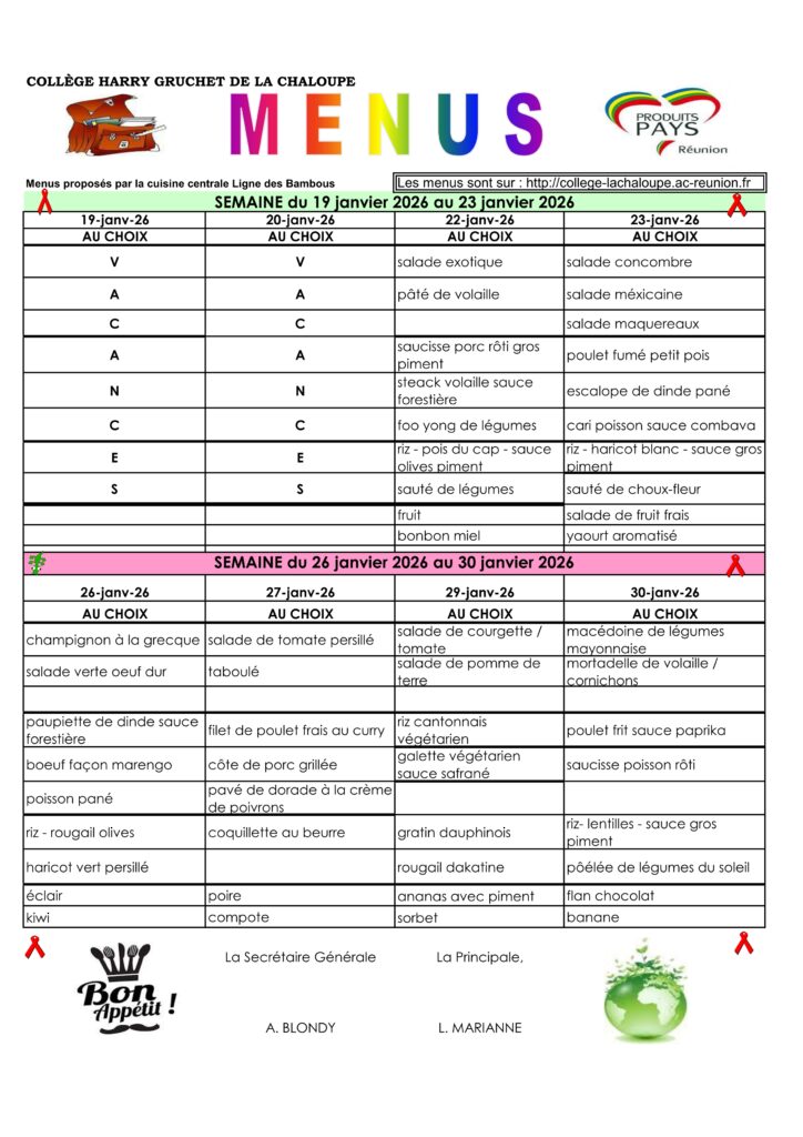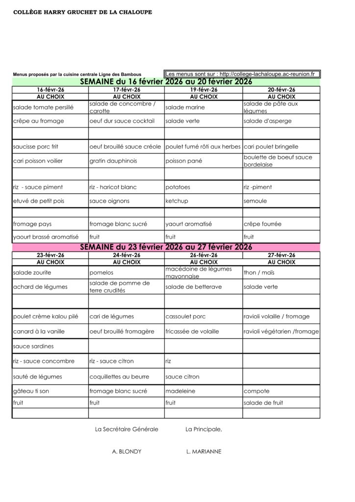 Menu de la cantine, du 22 janvier au 27 février 2026
