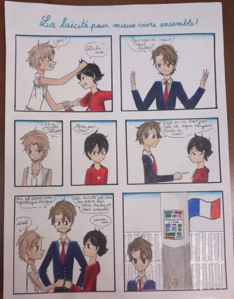 Ce concours invitait les élèves à illustrer l’un des thèmes suivants, autour des valeurs de la République et de la laïcité :