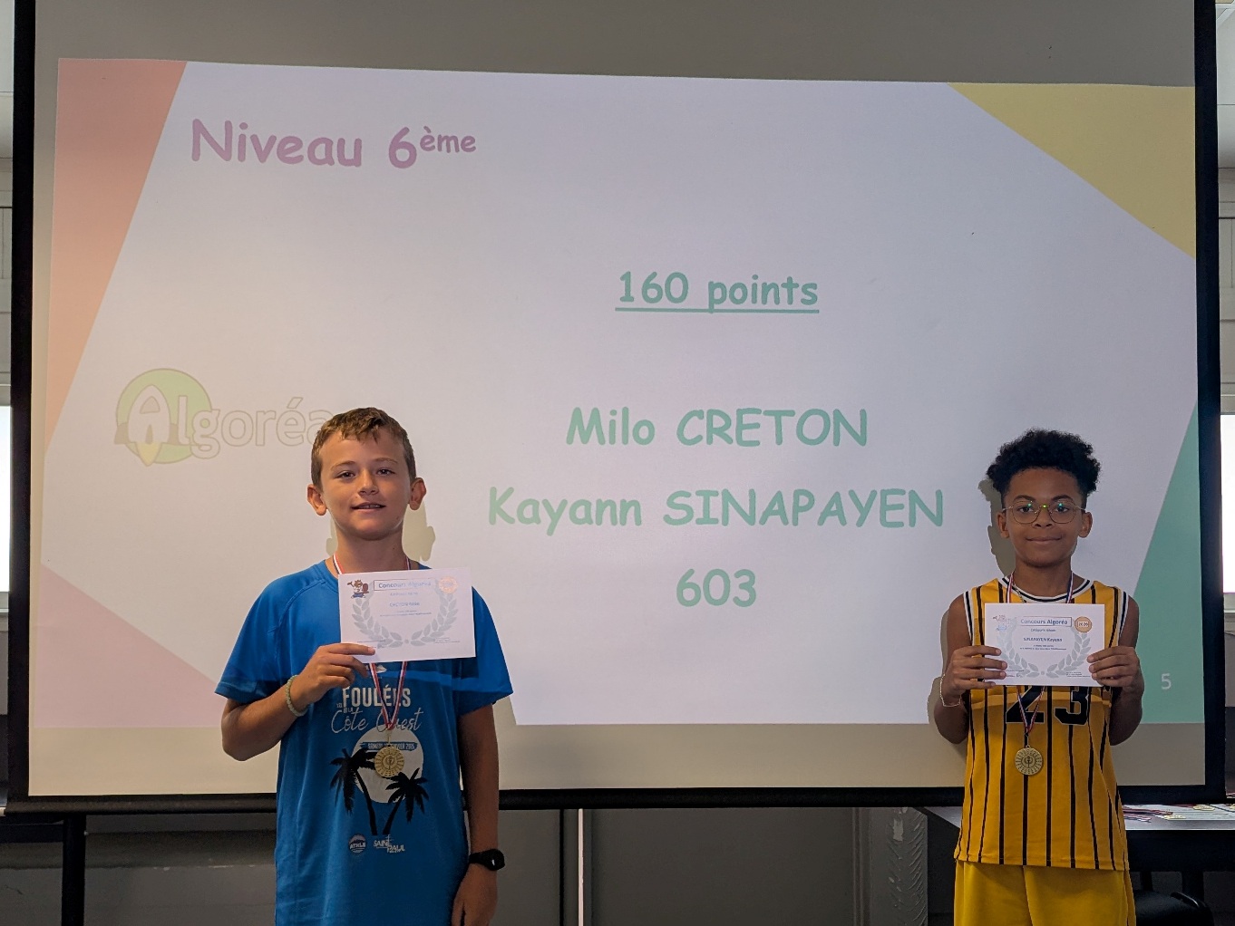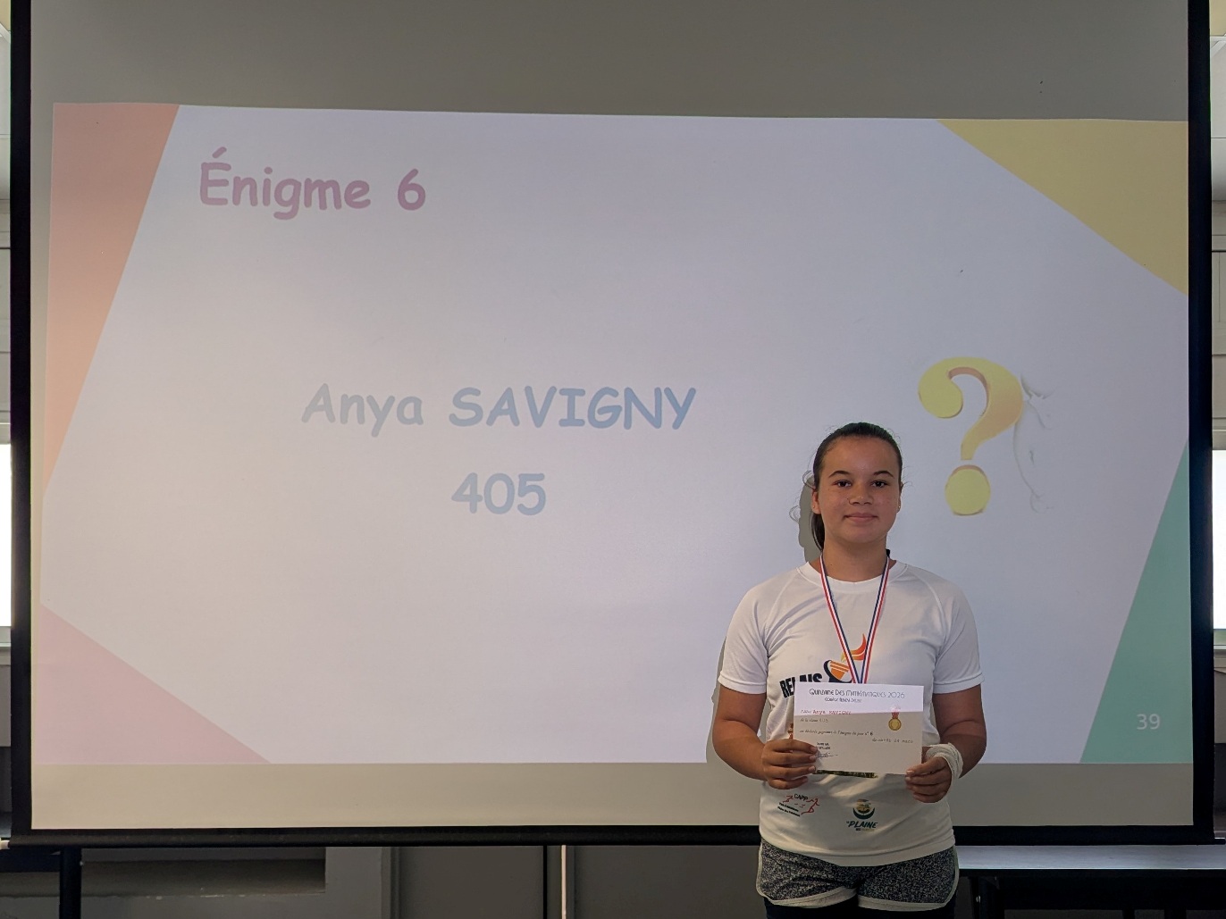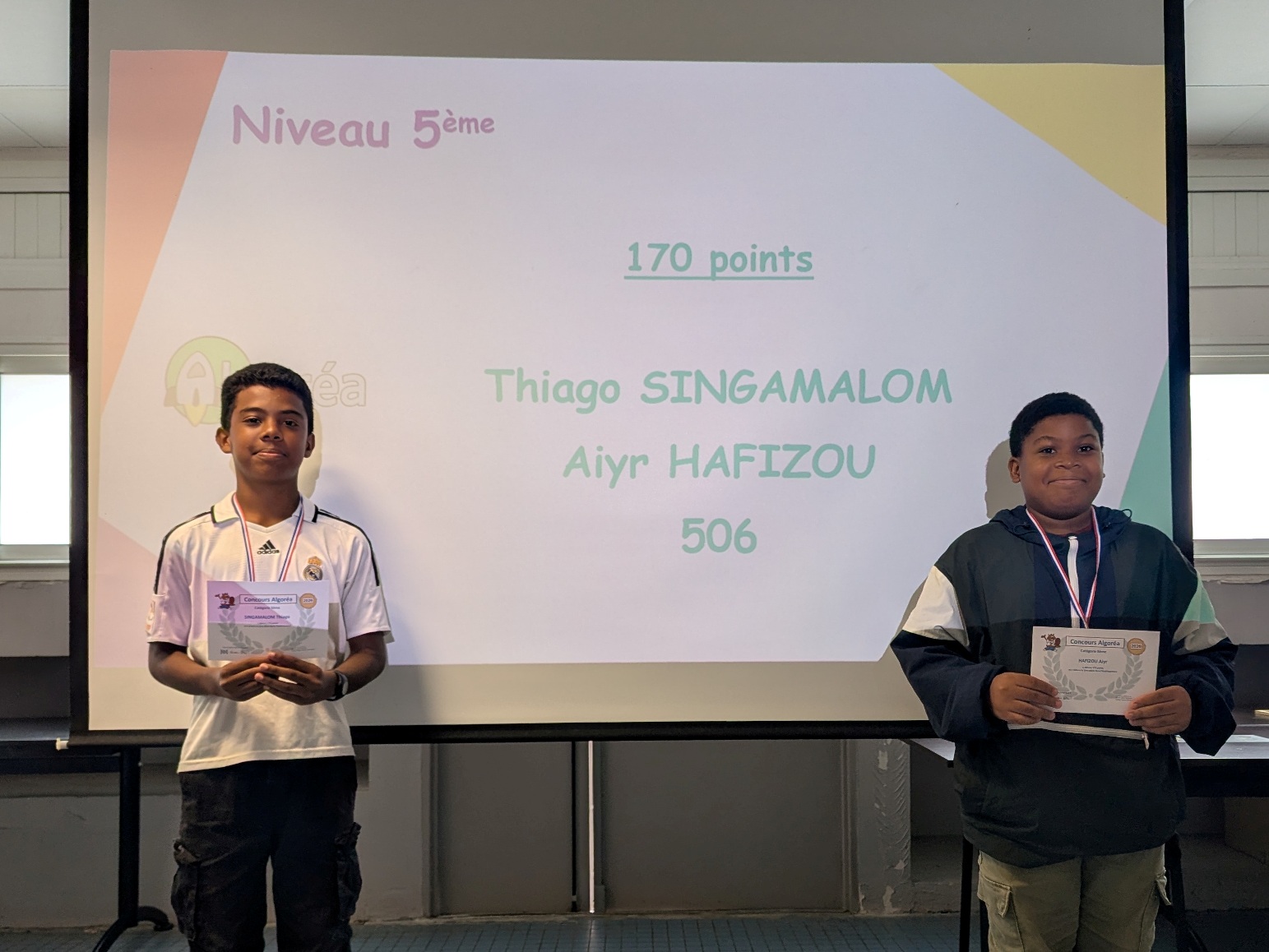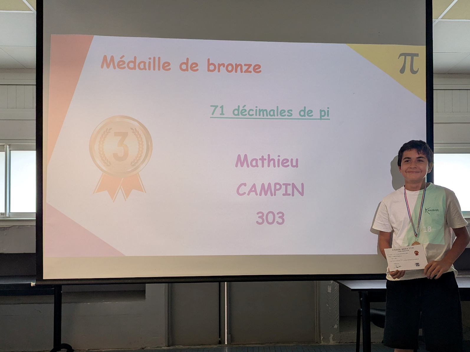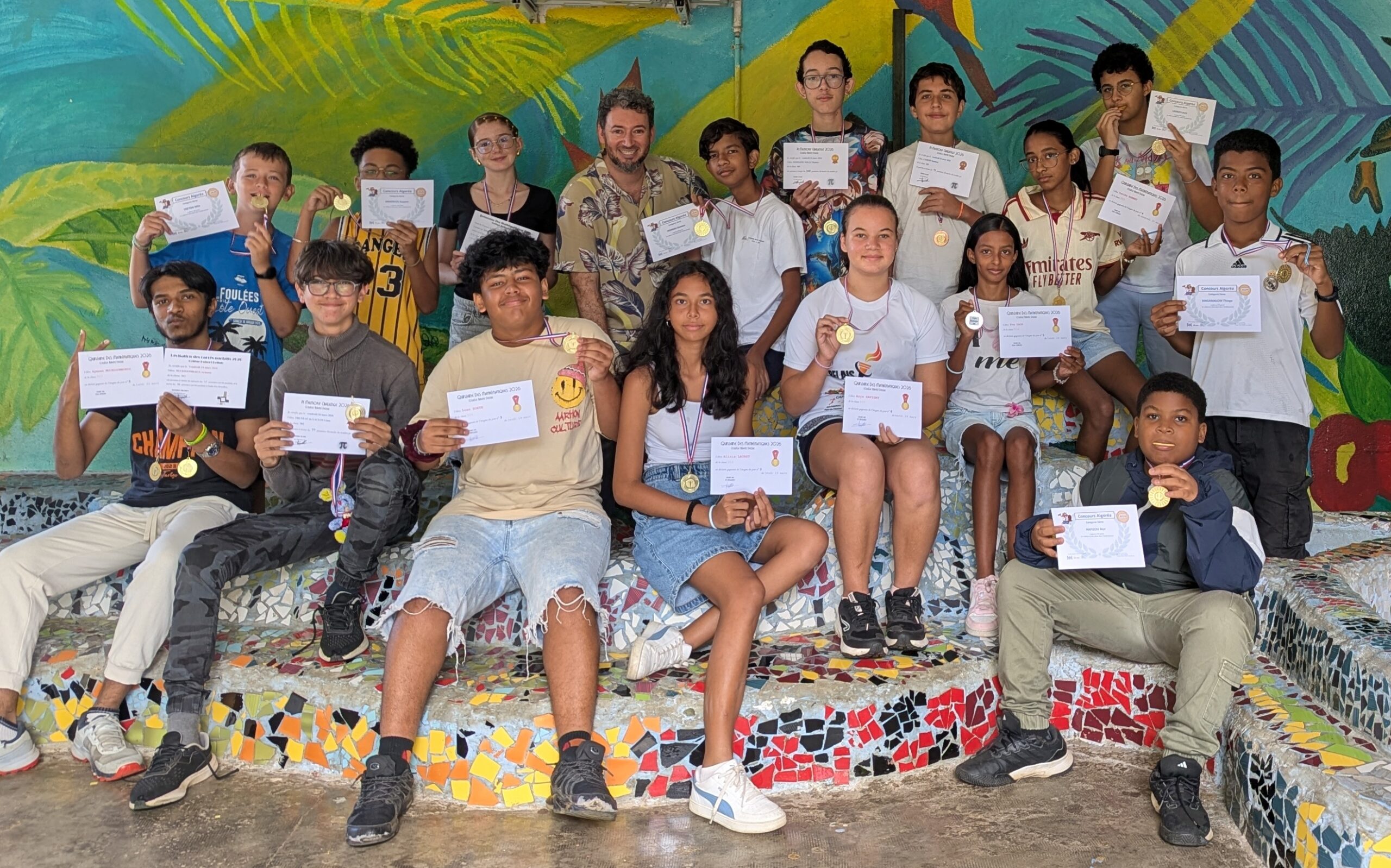La Quinzaine des Mathématiques 2026 s'est clôturée par une cérémonie de remise de récompenses au cours de laquelle tous les élèves qui se sont distingués au travers d'actions et de concours ont été primés : vainqueurs du concours Algoréa, des concours de mémoire mathématique, gagnants des énigmes de la Quinzaine, gagnante du prix du poster préféré de l'exposition "Les MathéMaticien(ne)s à travers les siècles".
