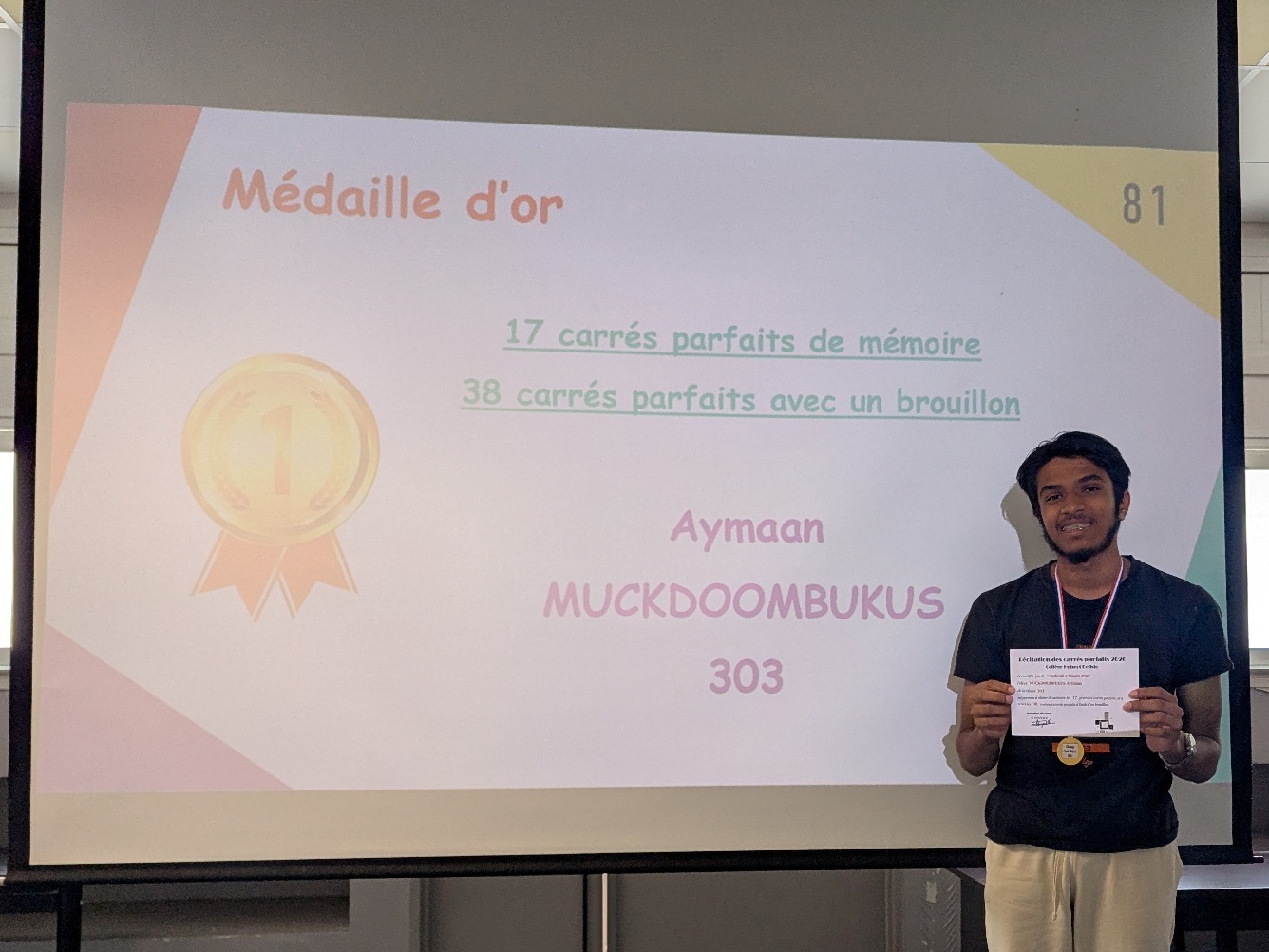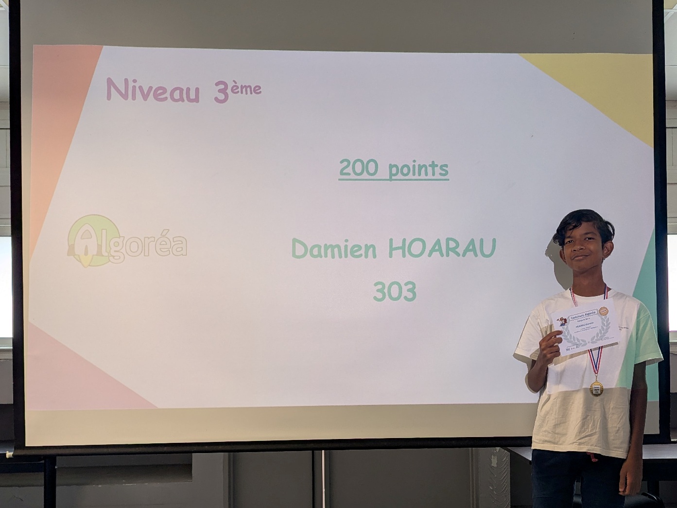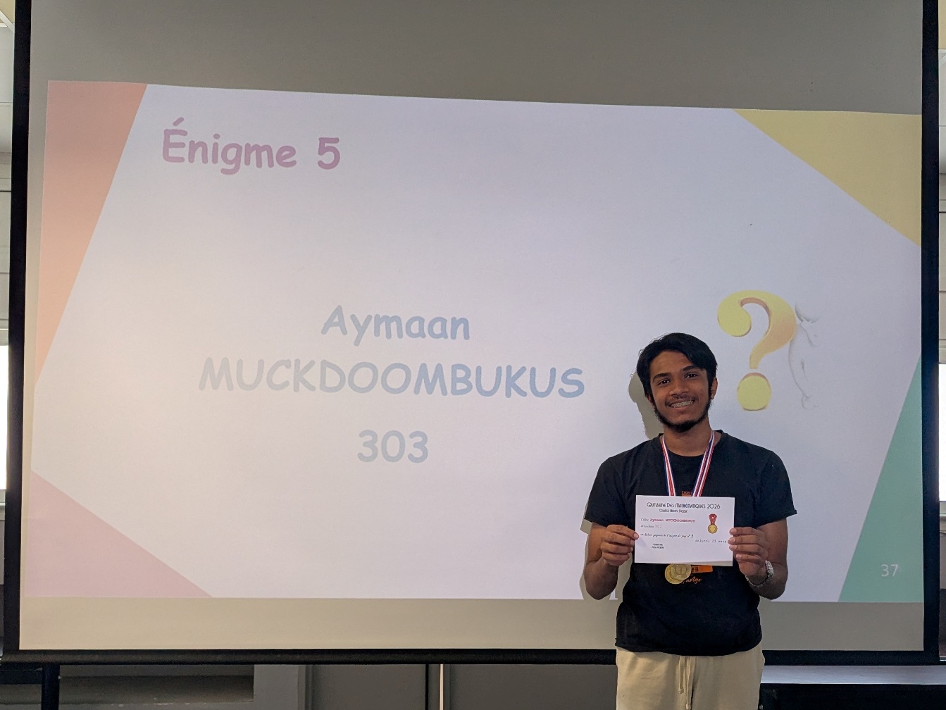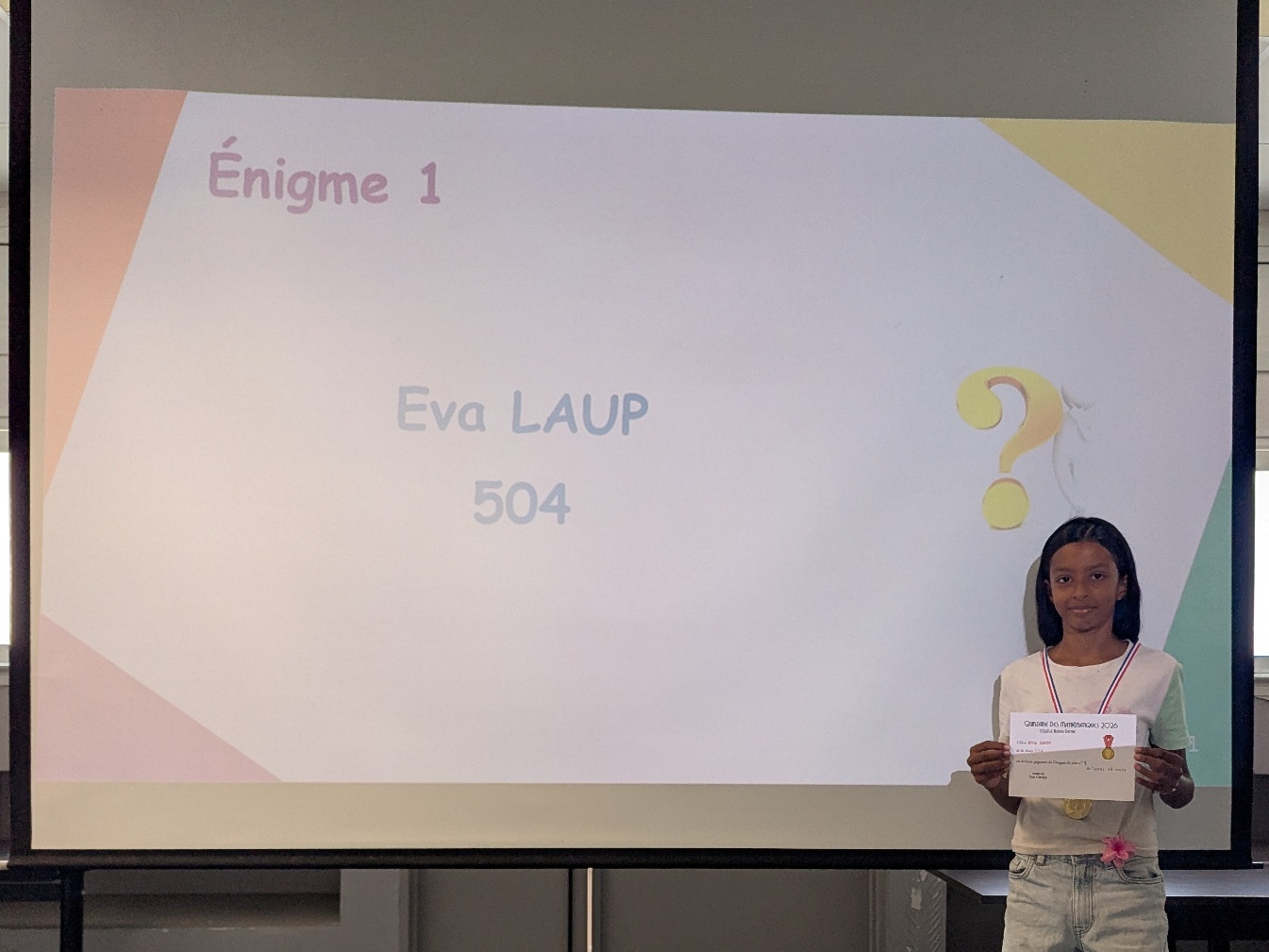 La Quinzaine des Mathématiques 2026 s'est clôturée par une cérémonie de remise de récompenses au cours de laquelle tous les élèves qui se sont distingués au travers d'actions et de concours ont été primés : vainqueurs du concours Algoréa, des concours de mémoire mathématique, gagnants des énigmes de la Quinzaine, gagnante du prix du poster préféré de l'exposition "Les MathéMaticien(ne)s à travers les siècles".