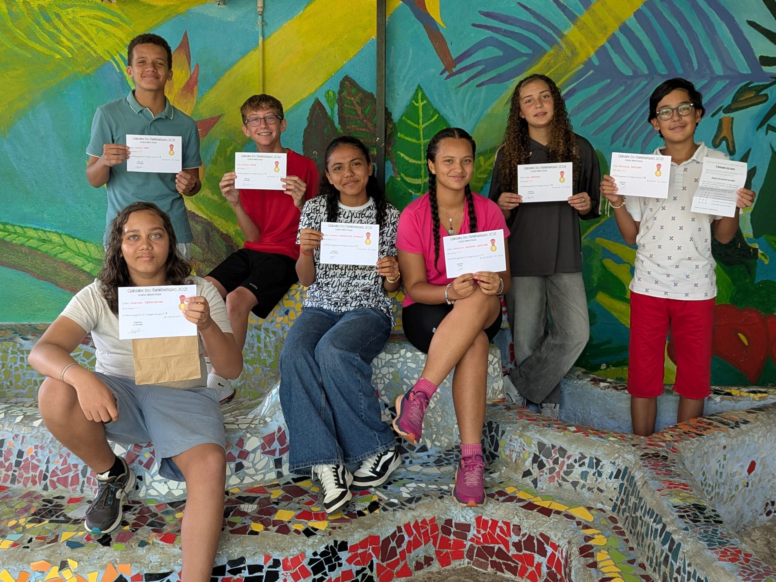 Les huit élèves gagnants, Océane, Lucas, Antoine, Lya, Jeevan, Ethan, Candice, et Evelyne, ont été récompensés et applaudis, et sont repartis avec quelques lots, et un certificat.
