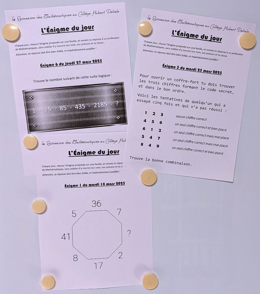 Durant la Quinzaine Des Mathématiques, chaque jour, une énigme mathématique a été proposée aux élèves.