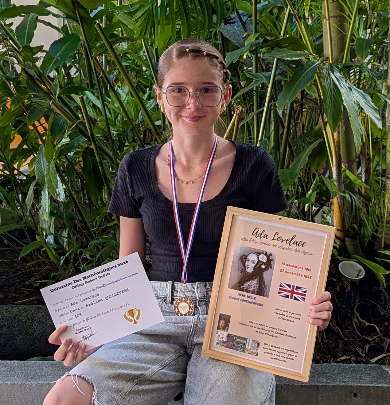 Posté par Ringwald Julien le 8 Mar 2026 dans Projet "Les mathématicien(ne)s à travers les siècles" 2025/2026 Les posters sur les mathématicien(ne)s Avec 34 voix sur 243, le poster sur Ada Lovelace réalisé par Azéline de la classe 408 a été élu poster préféré de l'exposition "Les MathéMaticien(ne)s à travers les siècles" !Bravo à elle ! Les posters réalisés par les élèves de l'atelier
