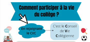 Le Conseil de la Vie Collégienne (CVC) reprend ses activités, et c’est le moment de t’impliquer pour améliorer la vie du collège !  Le CVC est composé de 20 élèves : Si tu es volontaire pour faire partie du CVC, viens récupérer ton acte de candidature en vie scolaire à partir du lundi 27 octobre !…