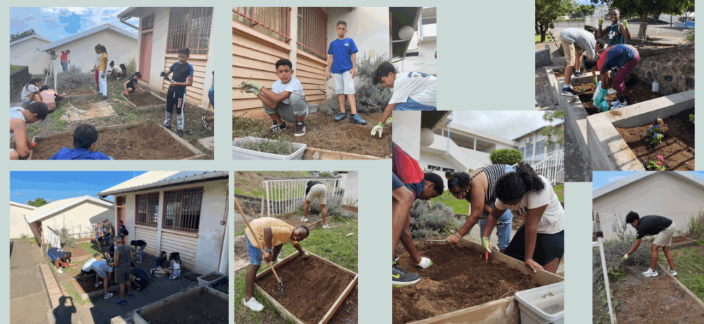 Avec le projet « Jardins du monde », les collégiens ont imaginé et réalisé plusieurs espaces verts inspirés des continents et de La Réunion. Ce jardin est devenu un lieu de partage, d’inclusion et de convivialité, où chaque élève a pu apporter sa contribution.