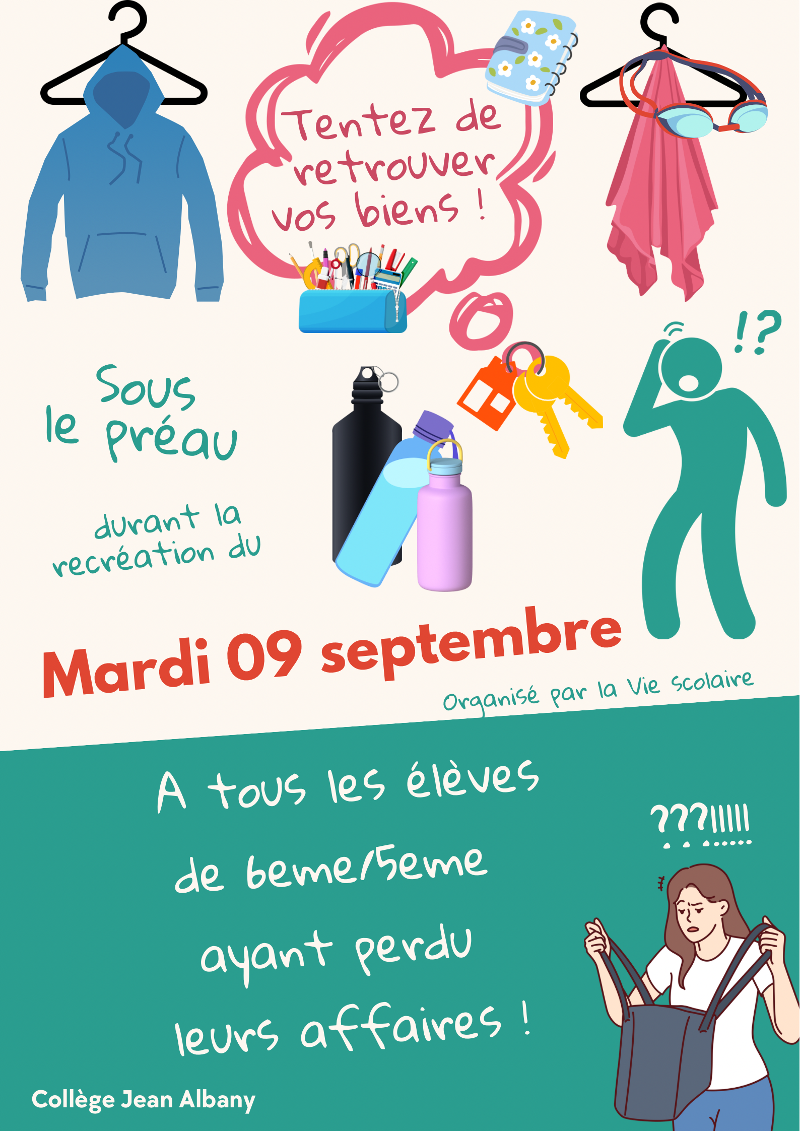 Home Actualité ELEVES DE 6EME ET 5EME TENTEZ DE RETROUVER VOS BIENS