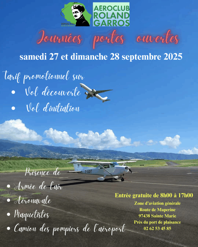 L’aéroclub Roland Garros a le plaisir de vous informer de ces journées portes ouvertes qui se dérouleront le samedi 27 et dimanche 28 septembre prochain dans ces locaux.