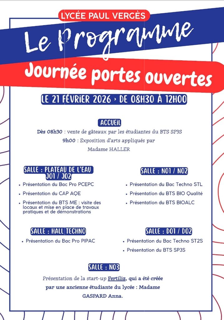 Portes Ouvertes au Lycée Paul VERGÈS le samedi 21 février 2026
