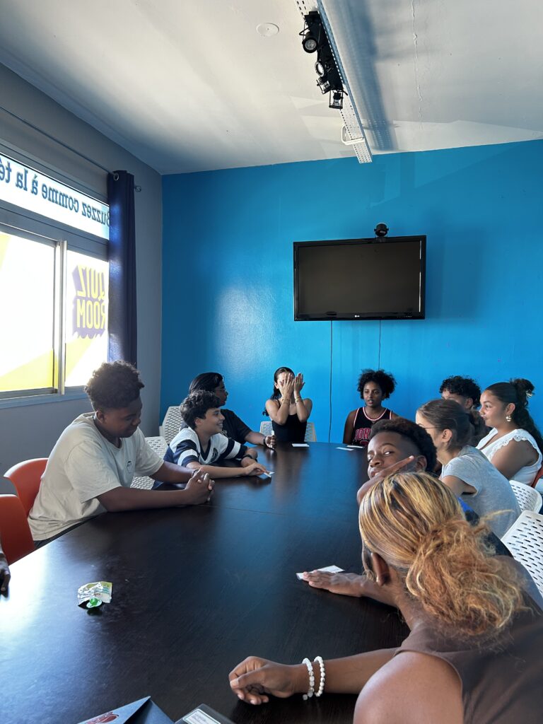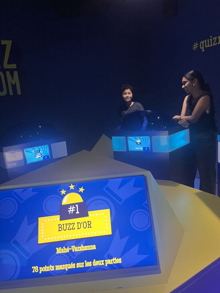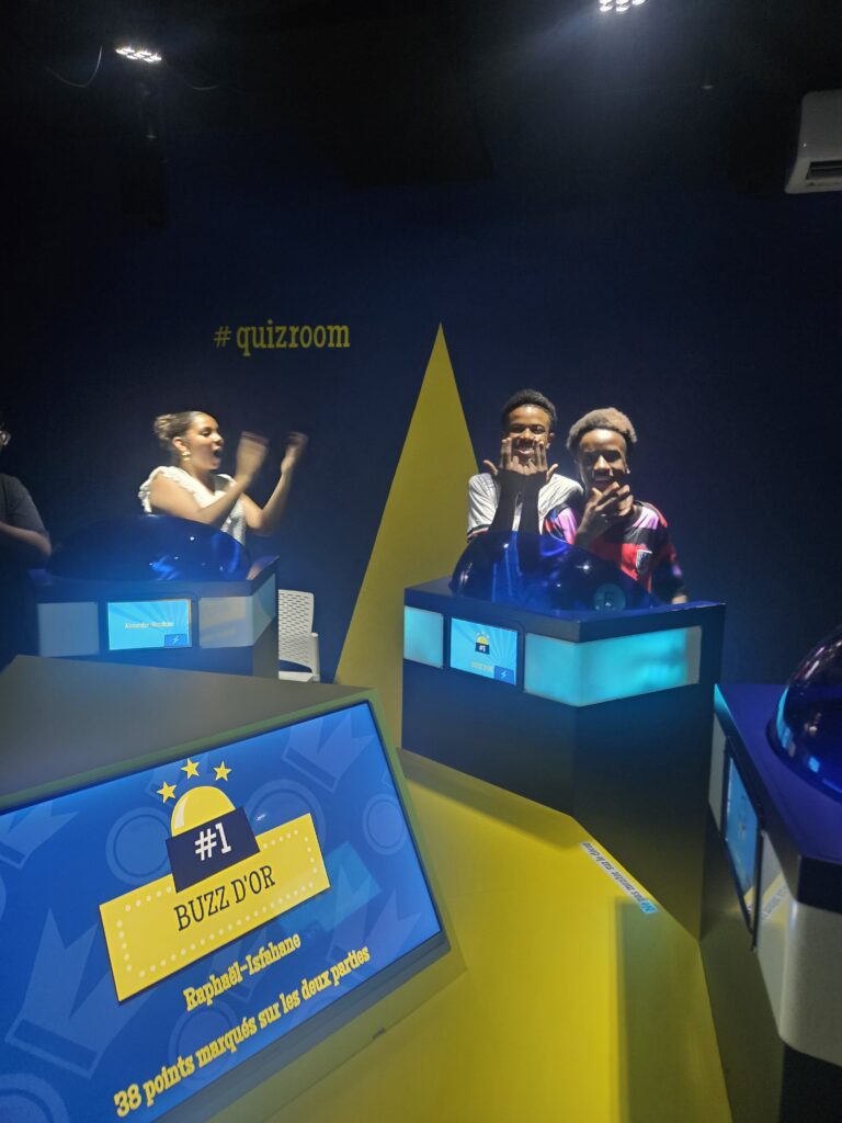 « Nous sommes partis nous délégués, au Quiz Room. Le Quiz Room est un jeu où on peut venir en familles ou avec des amis. Le jeu est très immersif du fait qu’il nous incruste dans un plateau télévisé, du genre ̏ Question pour un champion̋ ou ̏N’oubliez pas les paroles ̋. Il y a également des jockers : vol de points, x2, 50/50 et bloquer. Et quand les autres jouaient, on apprenait à être un bon délégué. »