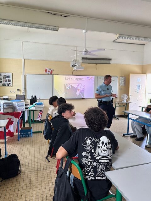 Pour chaque classe, un gendarme est venu nous parler des drogues et des addictions. Il nous a rappelé les bases (ne pas conduire après avoir bu, etc.)
