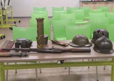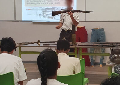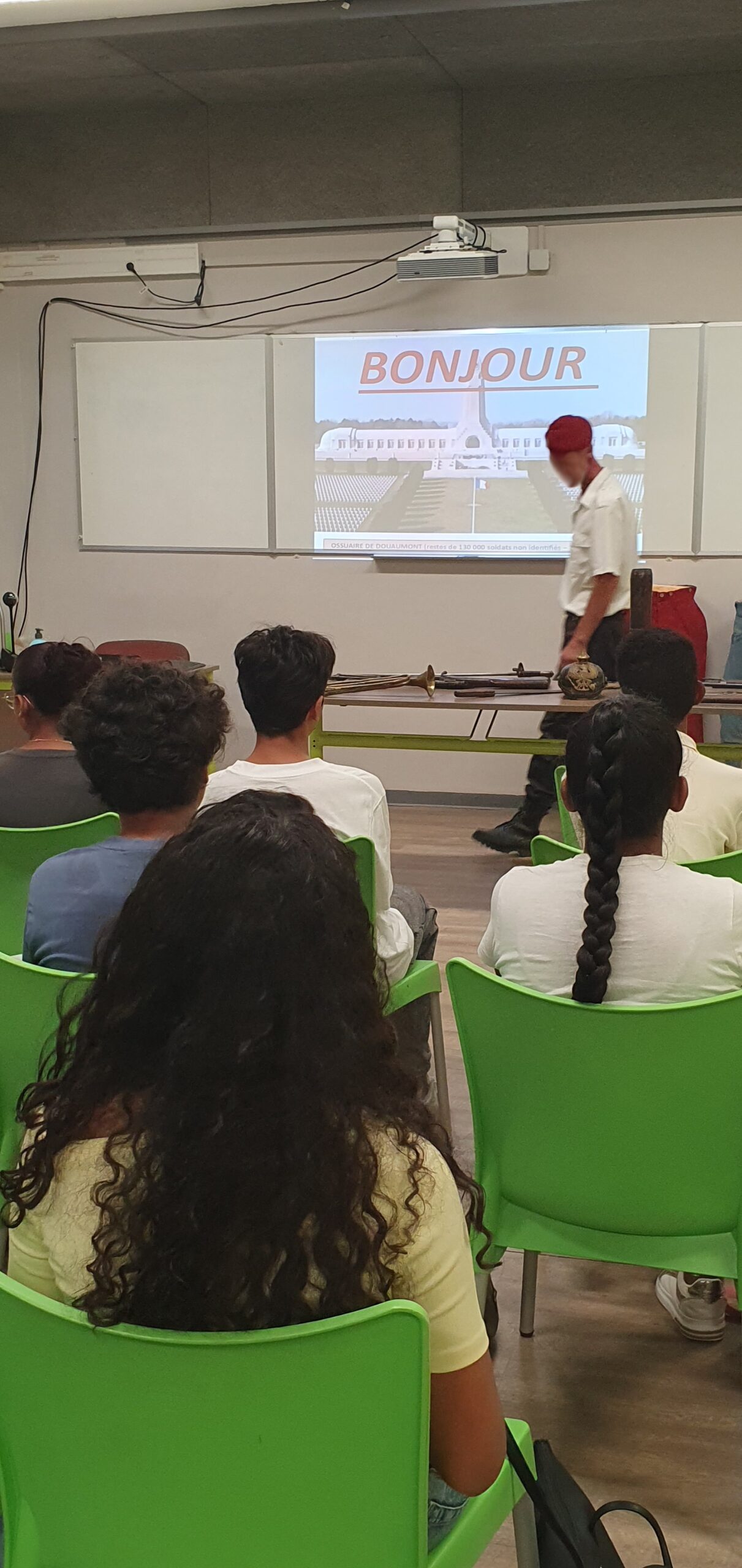 Ce mardi 02 décembre 2025, dans le cadre du Pass Culture, tous les élèves de troisième du collège Joseph BEDIER ont pu assister aux interventions de M. Philippe LE PIMPEC représentant de l’association « Mi aime mon musé », selon un planning défini sur toute la journée. Cette association est soutenue par l’Union des parachutistes de la Réunion. Lors de ces interventions, les élèves ont d’abord bénéficié d’une prévention sur la violence et sur ses conséquences. Puis, ils ont eu des compléments d’informations sur la Première Guerre mondiale en lien avec ce qui avait été fait en cours d’Histoire et ils ont pu manipuler des objets de cette guerre. Les élèves ont beaucoup apprécié et ont été marqués par cette intervention.