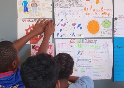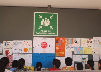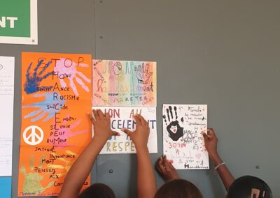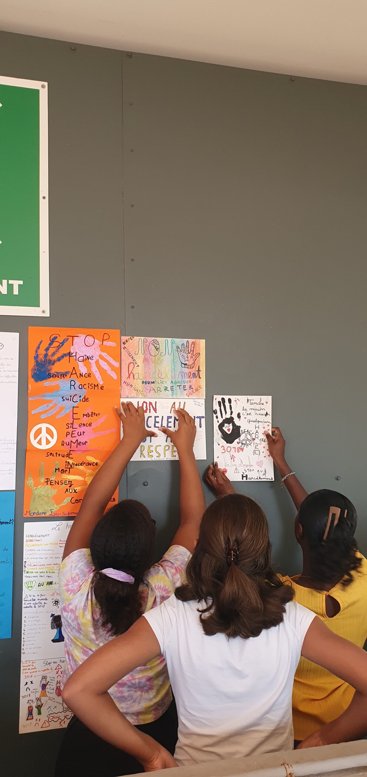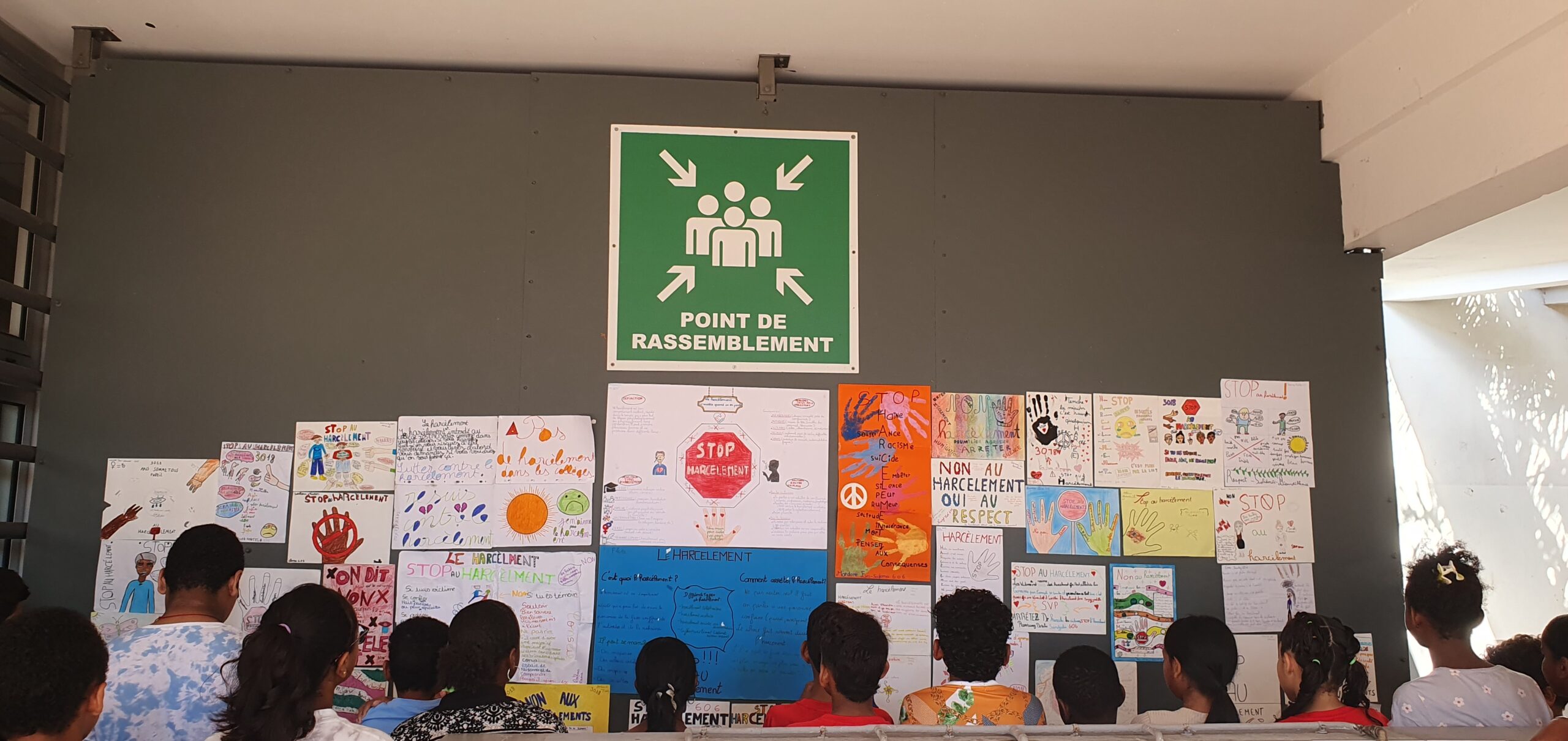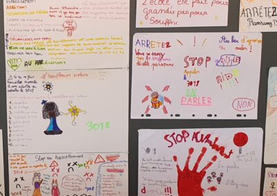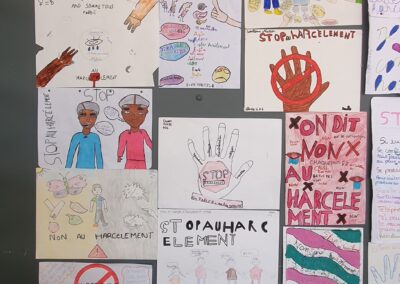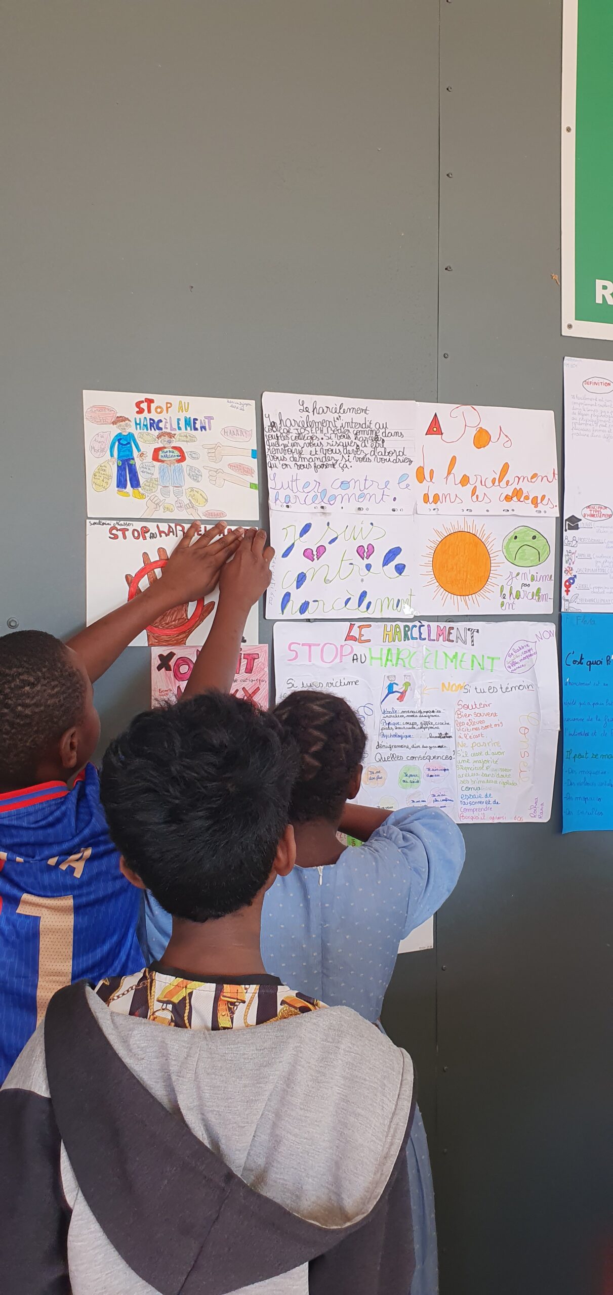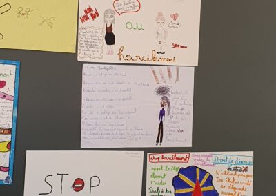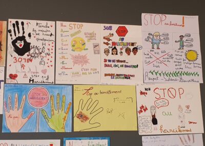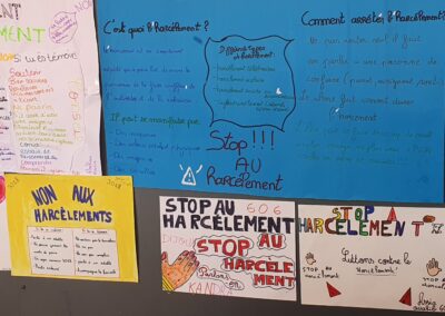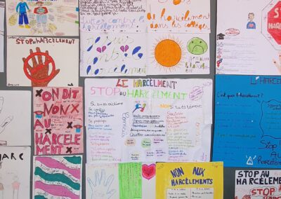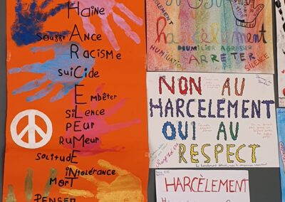 – De même, les élèves de 601 et 606 ont réalisé des affiches pour dire « stop au harcèlement ! ». Elles sont exposées à côté du réfectoire.