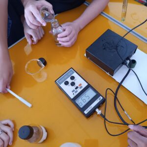 Les élèves inscrits au concours Cgénial ont pu échanger avec des élèves de première générale en spécialité de physique-chimie du lycée de Vincendo concernant leur projet sur la protection des sols. Les élèves de 6ème ont récupérer les eaux d’écoulement et d’infiltration sur leurs maquettes de sols: sur des sols nus et des sols avec plantes. Plusieurs mesures ont ensuite été réalisées dont l’absorbance et la conductivité des éléments chimiques présents dans ces solutions d’écoulement. Les élèves de Vincendo de leur côté nous ont présentés la fabrication des savons dans leur lycée à partir de plantes de leur arboretum.