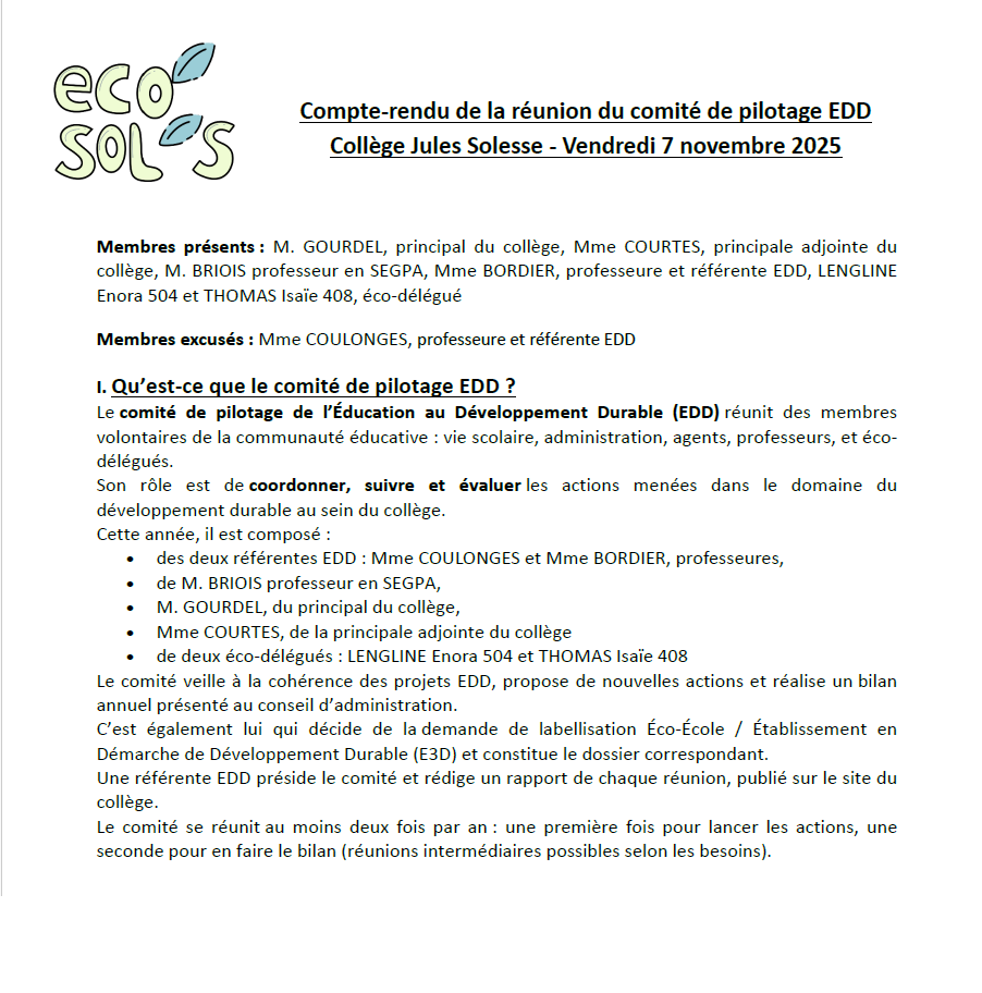 EDD. Compte rendu du comité de pilotage. Nov 2025