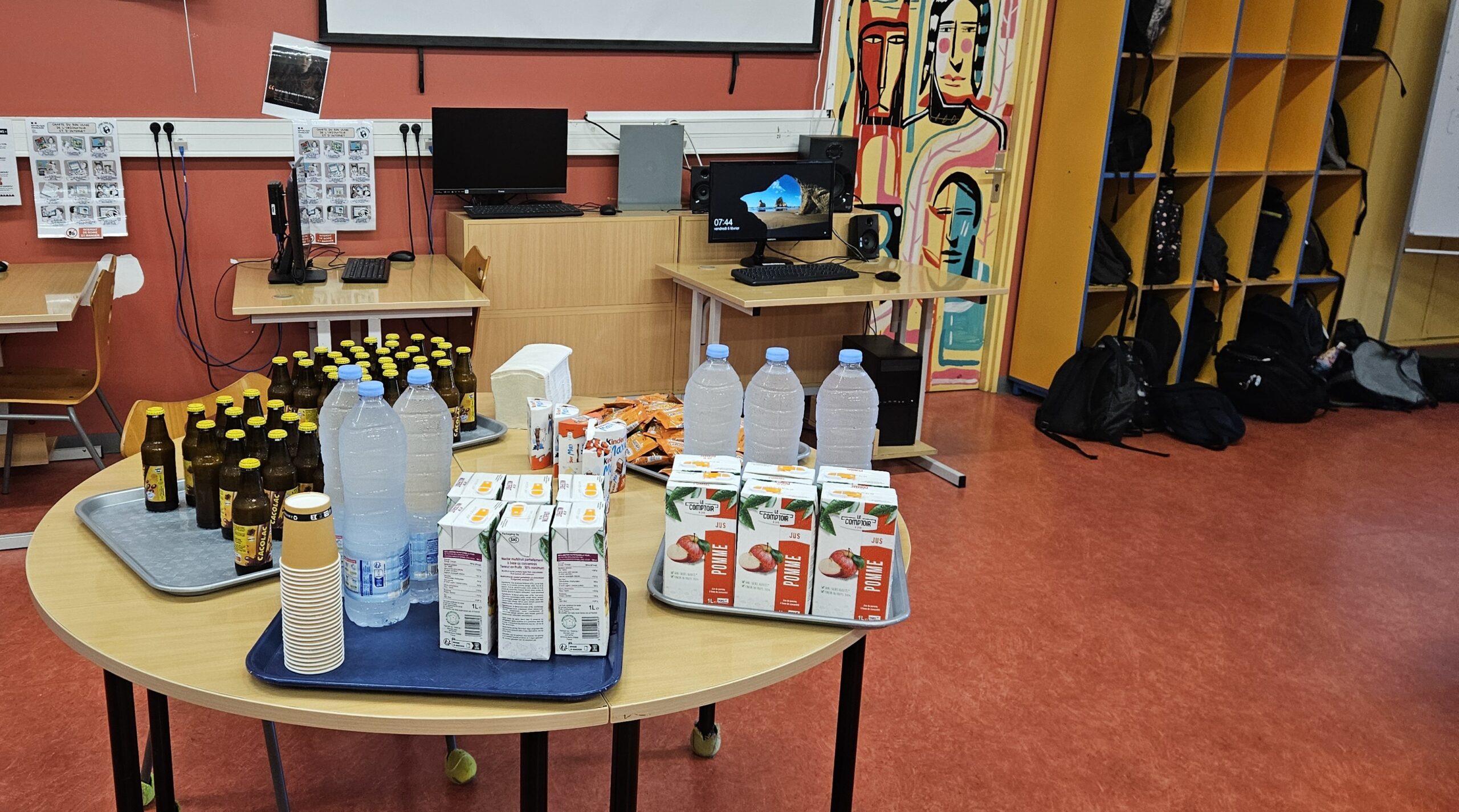 livres, du chocolat à boire et à croquer, des élèves qui p
