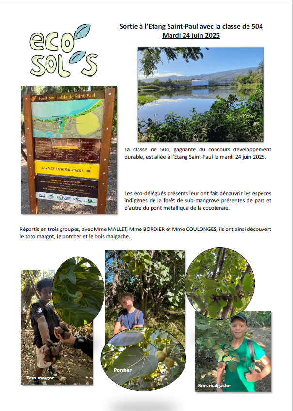 Sortie à l’Etang Saint-Paul avec la classe de 504