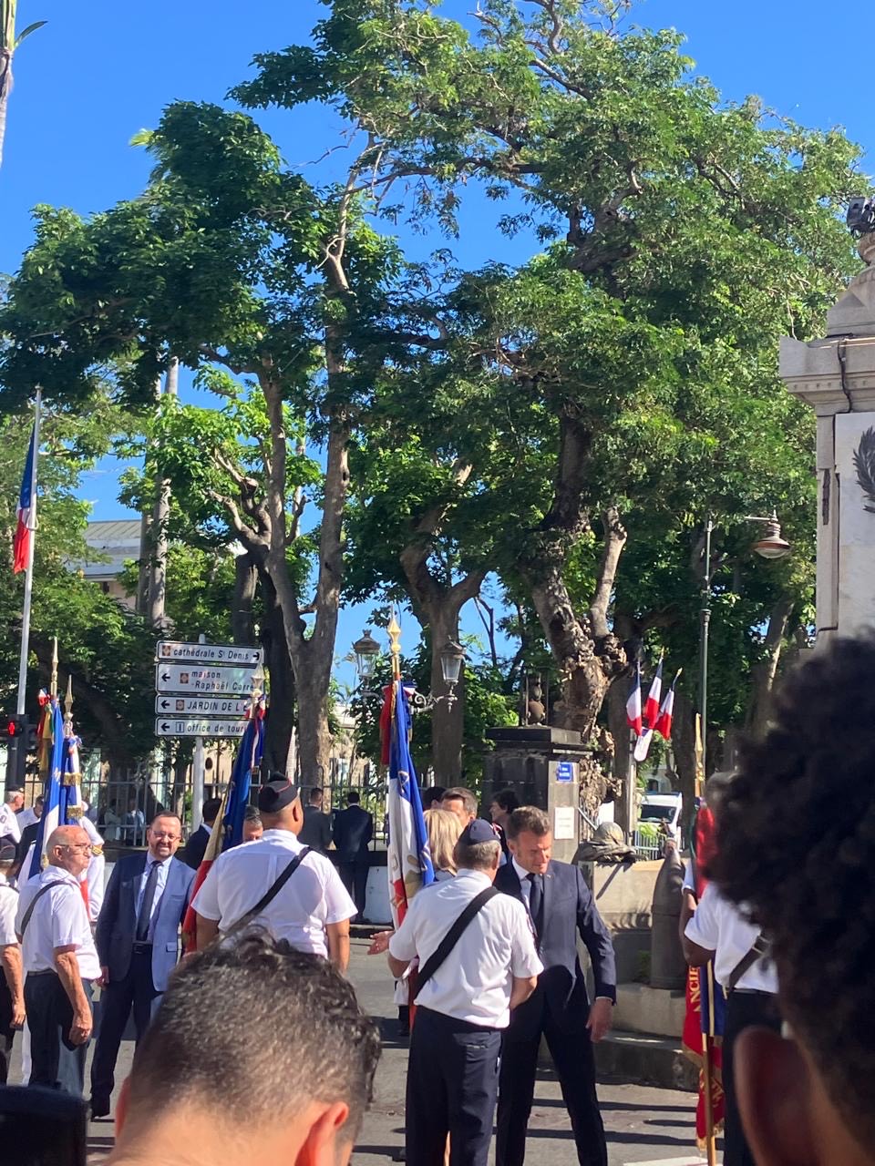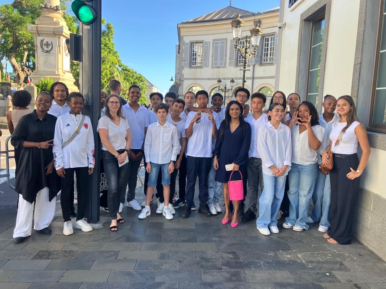 Des élèves de 4e du collège Juliette Dodu ont pu assister au dépôt de gerbes au monument aux Morts de Saint Denis le mardi 22 avril 2025 .