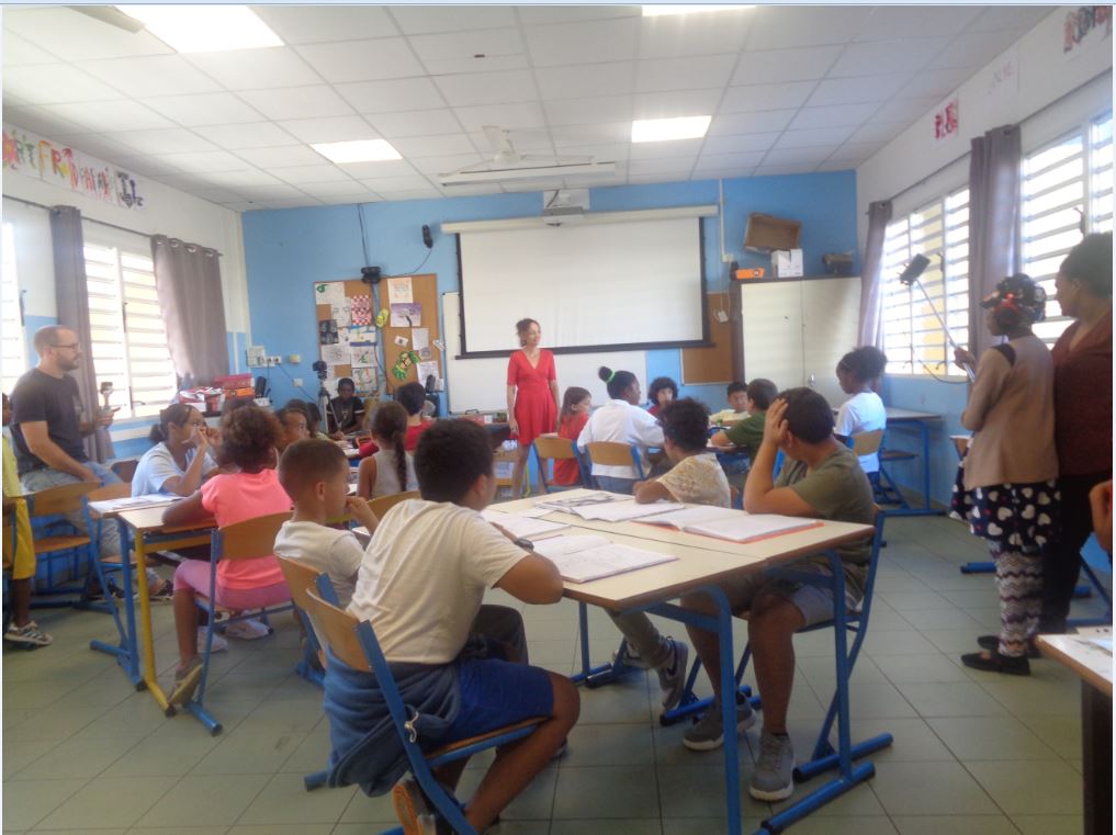 Les élèves de l’école sont venus 6 matinées entre février et mai 2024 pour tourner les scènes qui avaient lieu au collège. Des élèves de 6ème et d’ULIS ont participé au tournage en tant qu’acteurs et des élèves de l’école Aristide Briand ont filmé et fait les prises de sons sous la direction de Mme Lallemand, (professeur ULIS de l’école) et M Pascal Hoareau,( AESH).